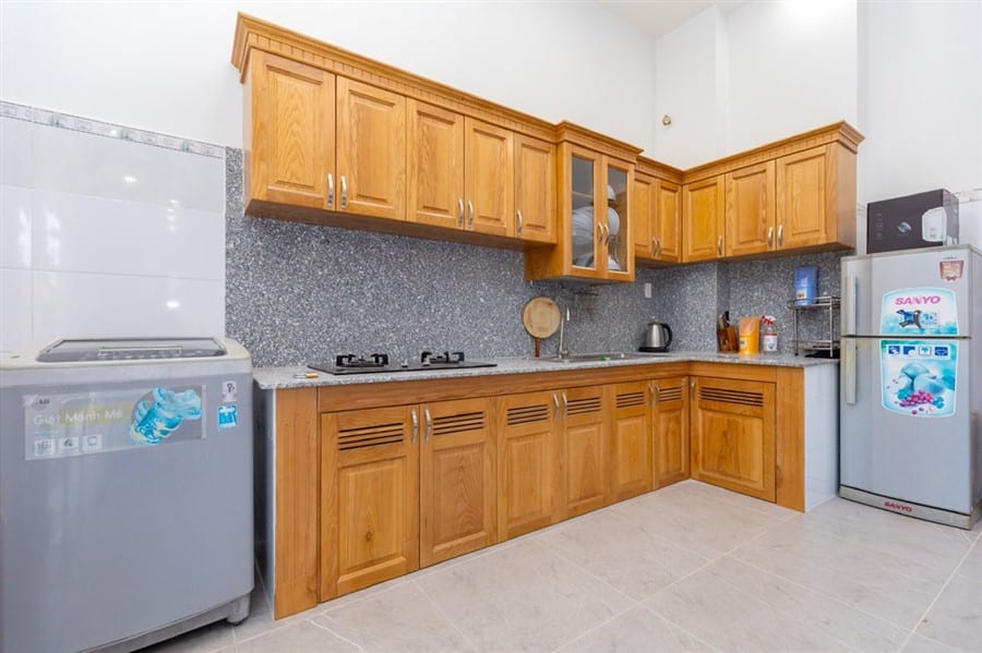 🍳 Nhà bếp đầy đủ tiện nghi: Tủ lạnh, lò nướng BBQ, bếp ga, nồi niêu, chén đĩa, gia vị cơ bản.