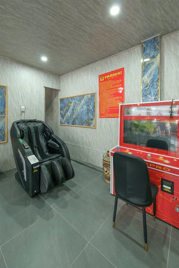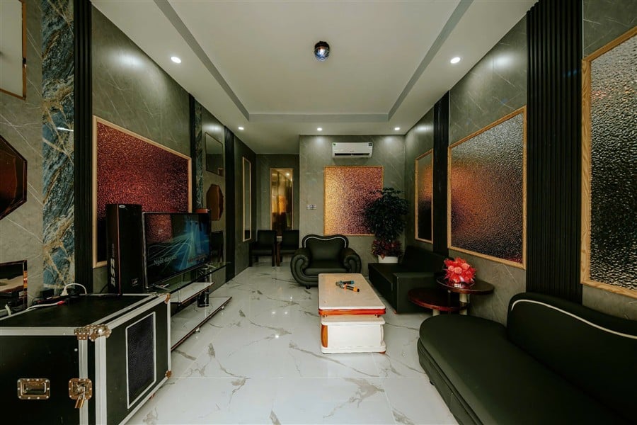 ✅ Phòng khách máy lạnh, sofa sang trọng, TV màn hình lớn, khu giải trí: bàn bida, karaoke riêng, ghế massage