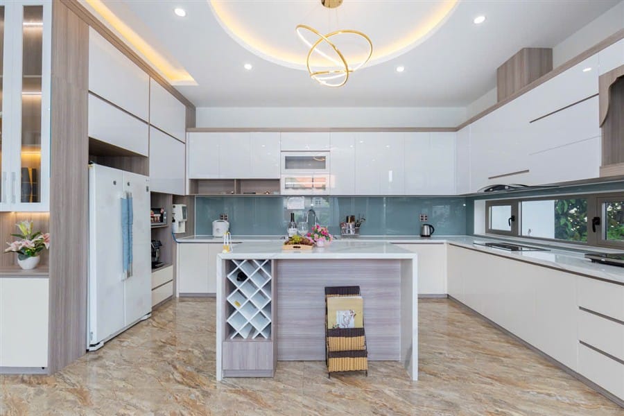 Bếp được trang bị đầy đủ: bếp gas, bếp nướng BBQ, lò vi sóng, tủ lạnh, nồi, chén dĩa, dụng cụ nấu bếp và gia vị cơ bản. Homestay còn có máy giặt, bàn ủi, chăn ga gối tiêu chuẩn khách sạn và các vật dụng cá nhân cần thiết. Quản gia hỗ trợ 24/7, đồng thời hỗ trợ check-in sớm theo tình hình thực tế, đảm bảo mọi khách hàng có trải nghiệm tiện nghi, thoải mái và trọn vẹn.
