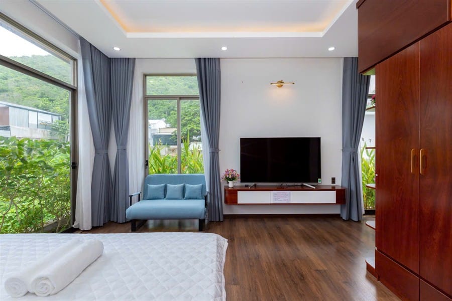 ✅ Nội thất hiện đại: máy lạnh, bàn ủi, máy sấy tóc, chăn ga gối tiêu chuẩn khách sạn