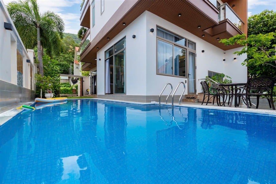 Hồ bơi rộng, sân vườn, sân BBQ, phòng karaoke và bàn bida mang đến trải nghiệm giải trí trọn vẹn
