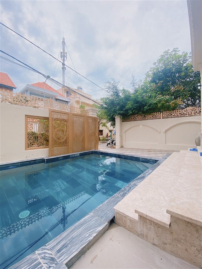 Tiện ích: Hồ bơi: Hồ bơi rộng 30m² Sân vườn: Khu vực BBQ ngoài trời, sân vườn rộng rãi Karaoke: Hệ thống karaoke hiện đại