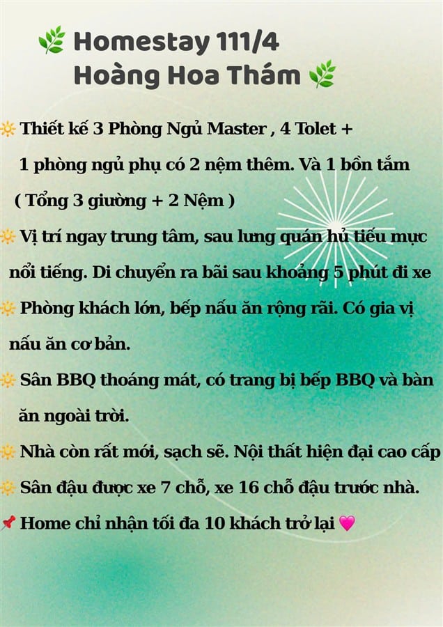 Homestay 111/4 Hoàng Hoa Thám – 3 Phòng Ngủ, Sân BBQ, Gần Biển, Sức Chứa 10 Khách