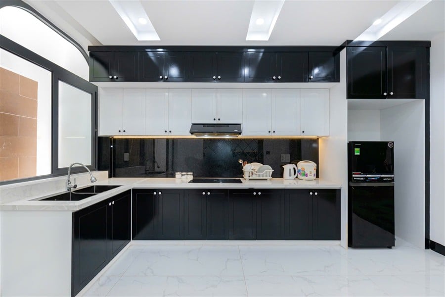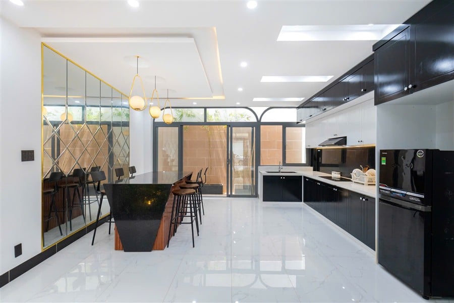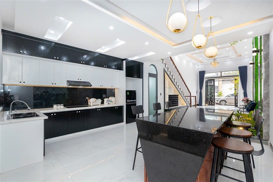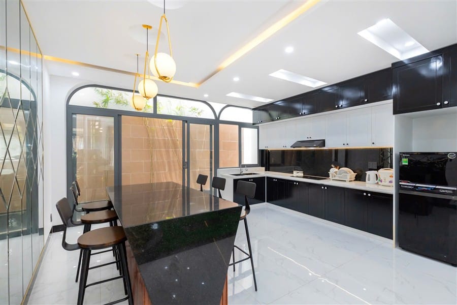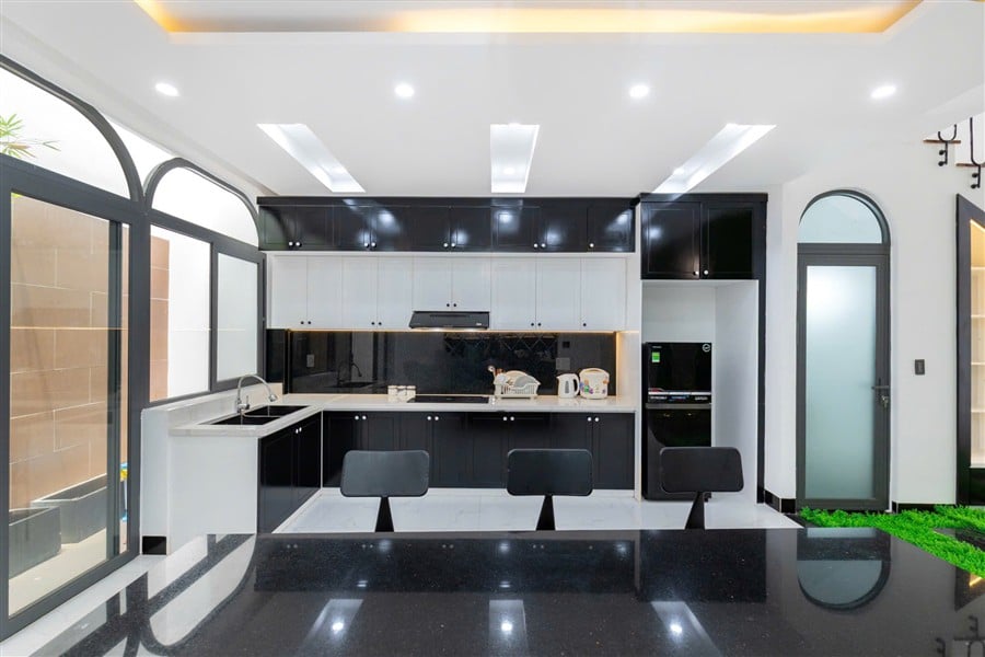 ✅ Phòng khách rộng rãi, bếp đầy đủ dụng cụ nấu ăn và gia vị cơ bản
