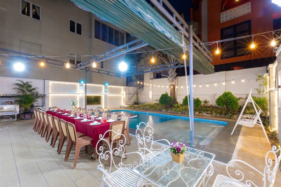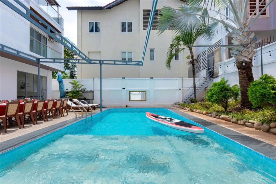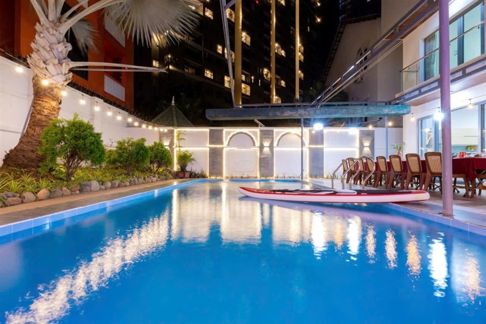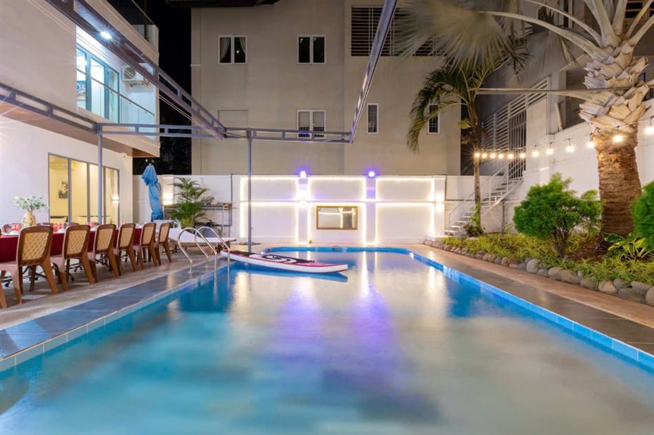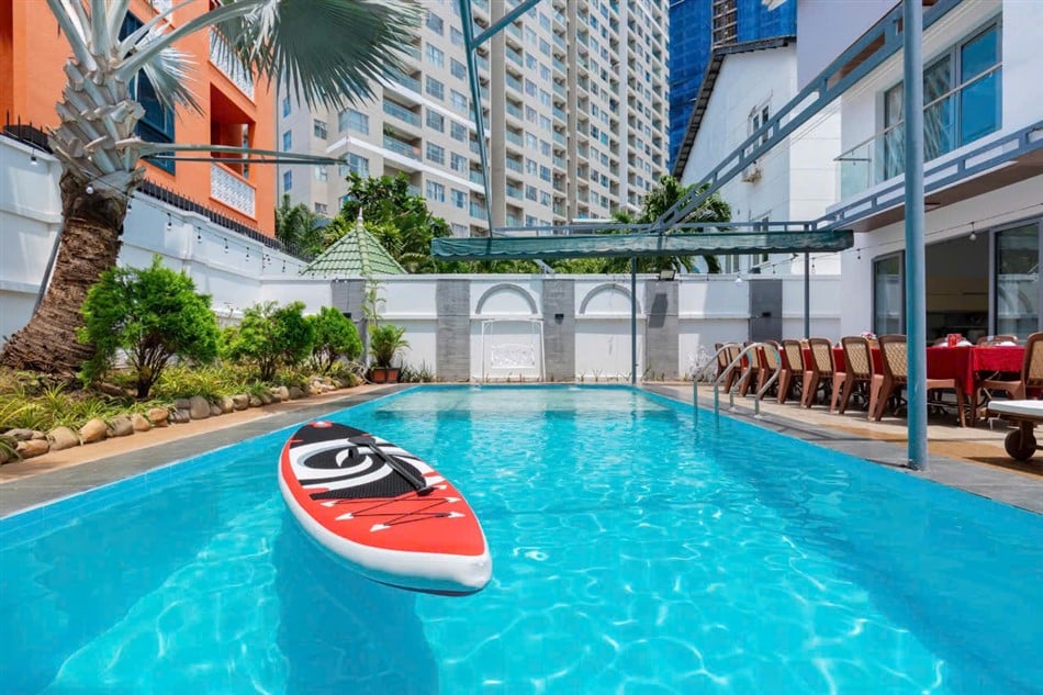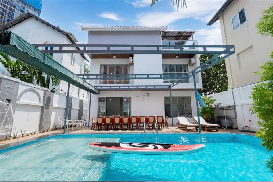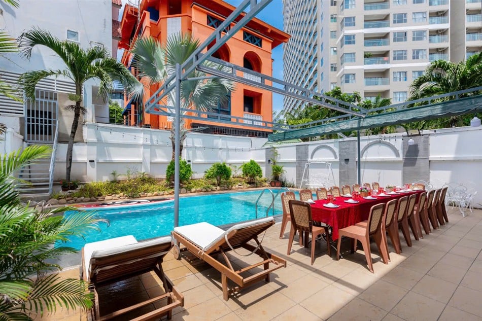 Hồ bơi rộng, sân vườn, sân BBQ, phòng karaoke và bàn bida mang đến trải nghiệm giải trí trọn vẹn