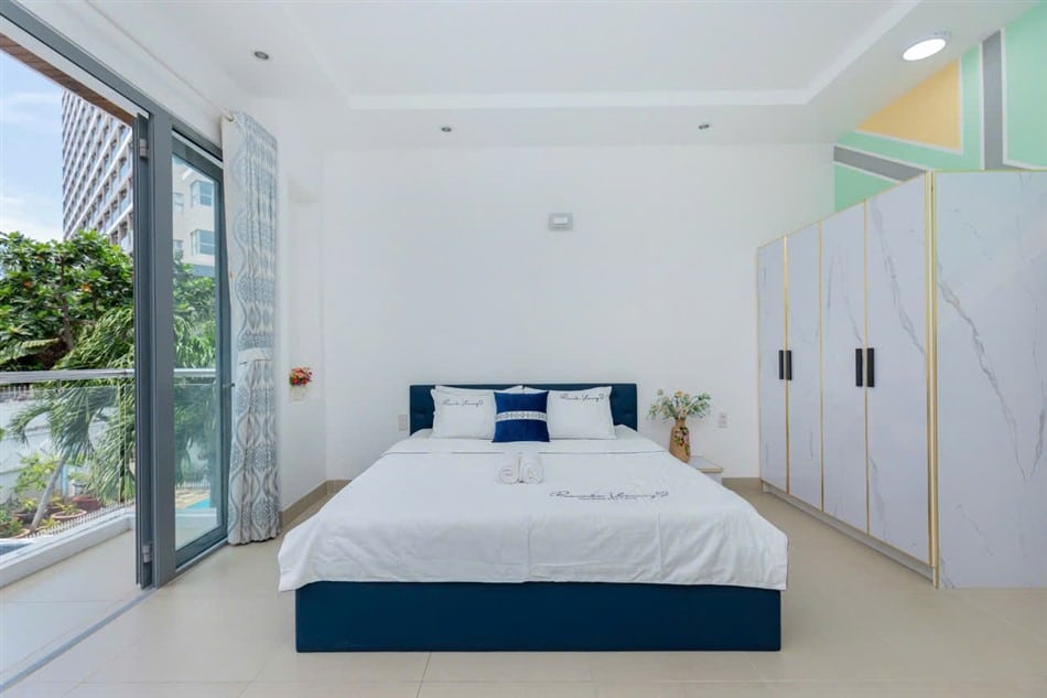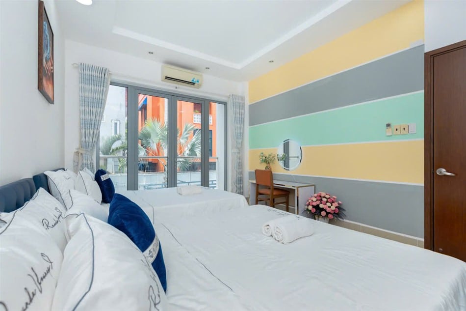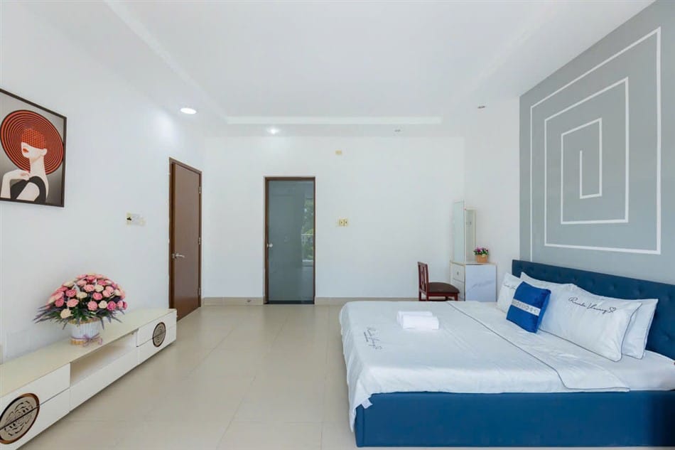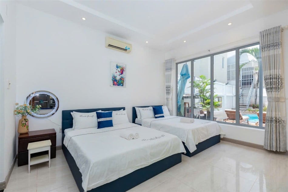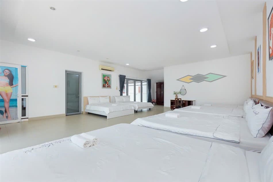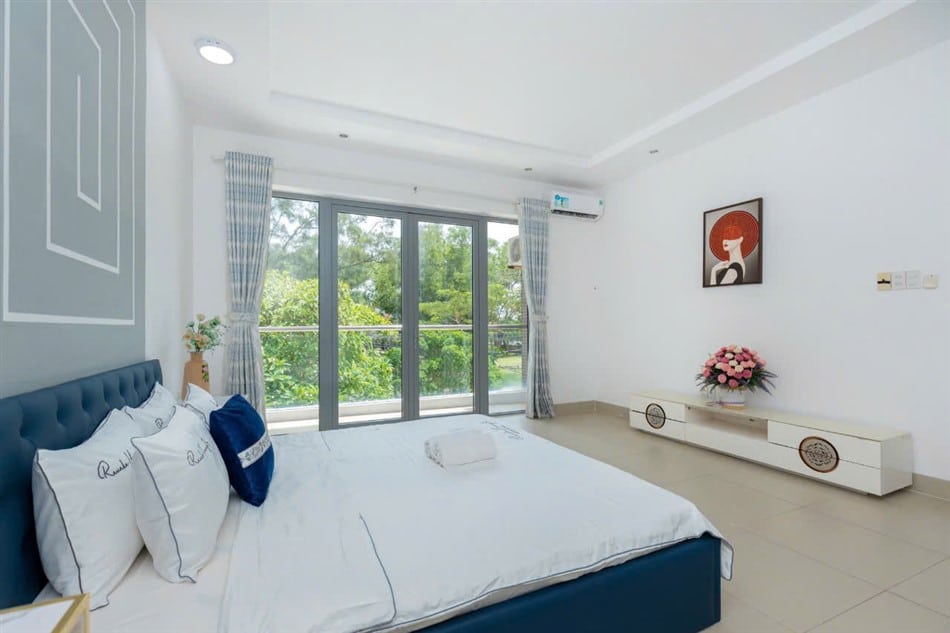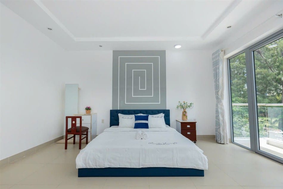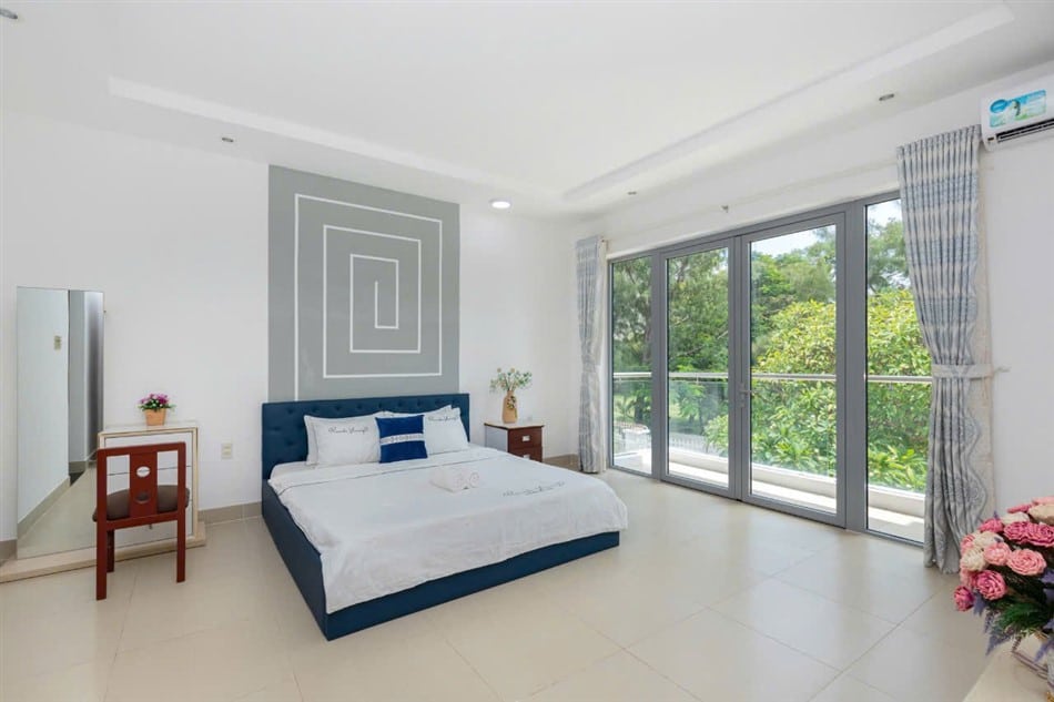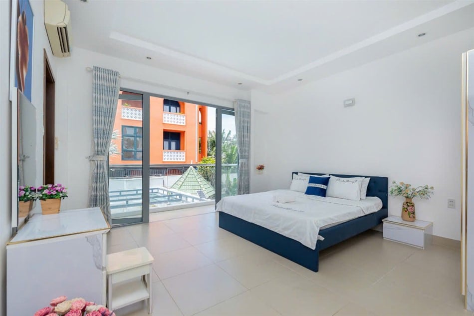 Mỗi phòng đều được trang bị máy lạnh, nội thất hiện đại, ban công thoáng mát, tủ quần áo và rèm chống muỗi, mang đến trải nghiệm nghỉ dưỡng tiện nghi, thoải mái và sang trọng. Phòng khách rộng rãi với sofa sang trọng, TV màn hình lớn, khu vực giải trí với bàn bida, karaoke VIP và ghế massage, đáp ứng nhu cầu thư giãn và vui chơi cho mọi thành viên.