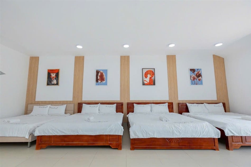 Homestay gồm 5 phòng ngủ với tổng 12 giường và 7 nệm phụ, sức chứa tiêu chuẩn 20 khách và tối đa 30 khách với phụ phí.