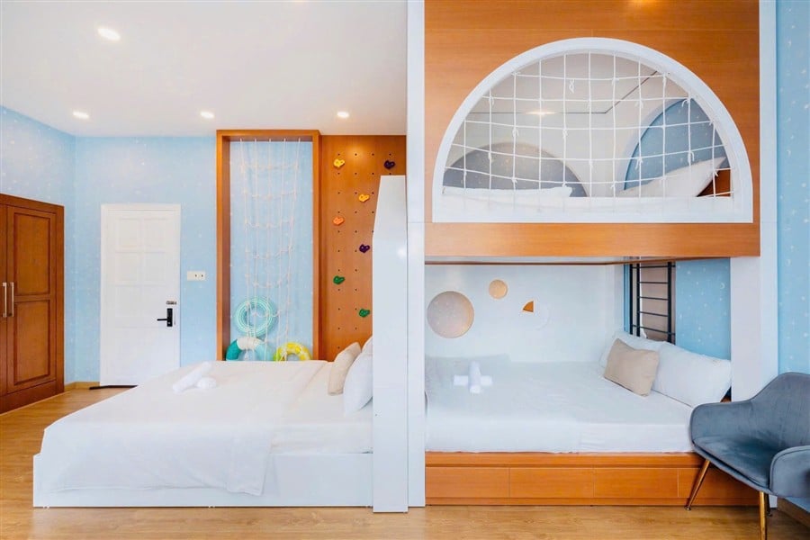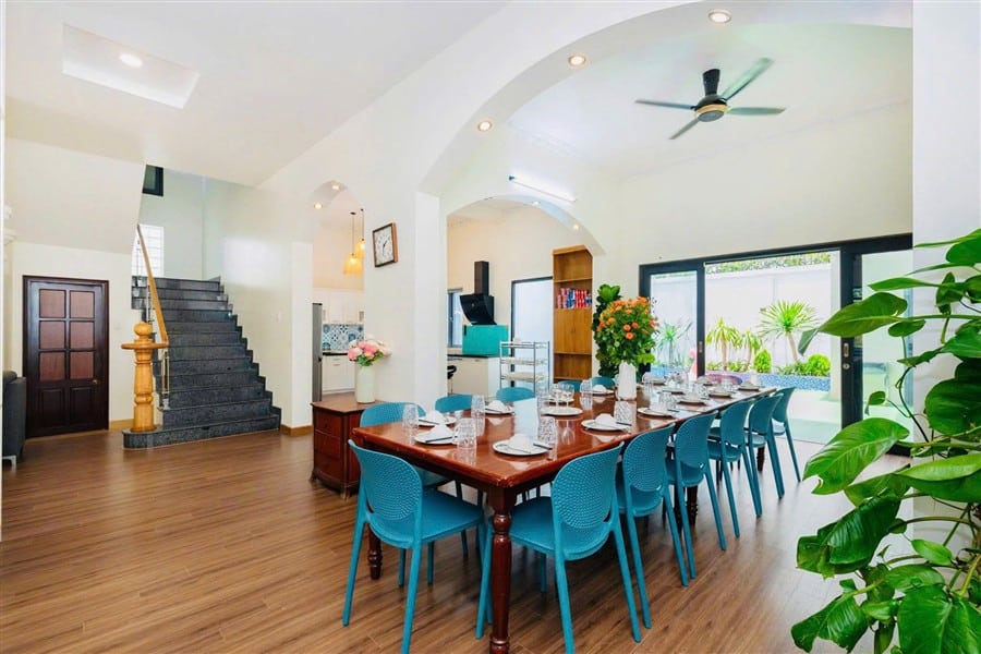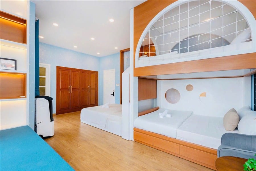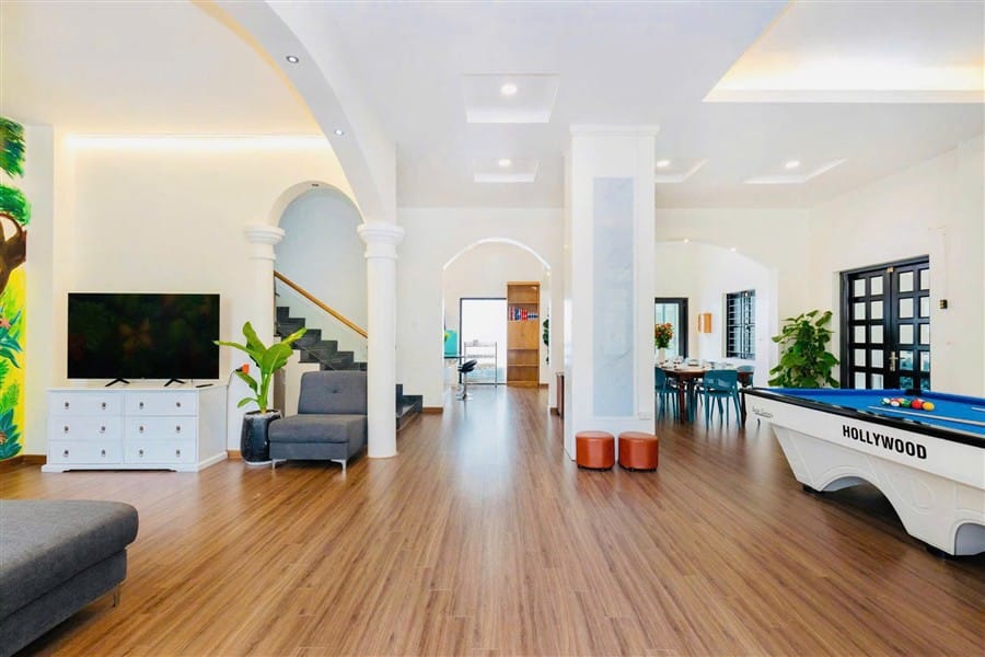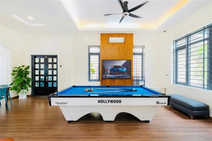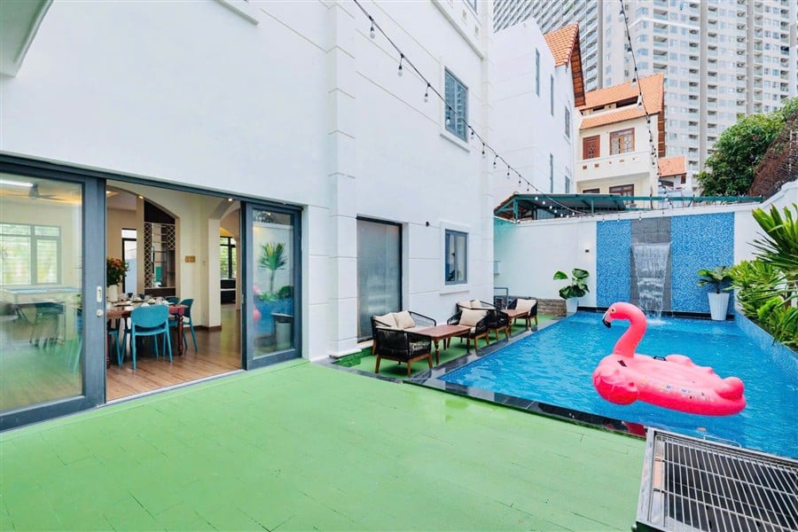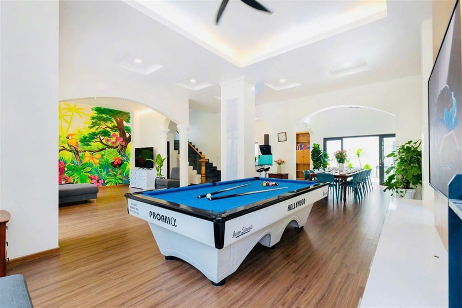 Với 6 phòng ngủ, 13 giường, hồ bơi riêng, phòng karaoke, bàn bida và khu BBQ cực rộng, homestay mang đến trải nghiệm vừa sang trọng vừa ấm cúng, kết hợp giữa tiện nghi hiện đại và không gian xanh mát gần biển.