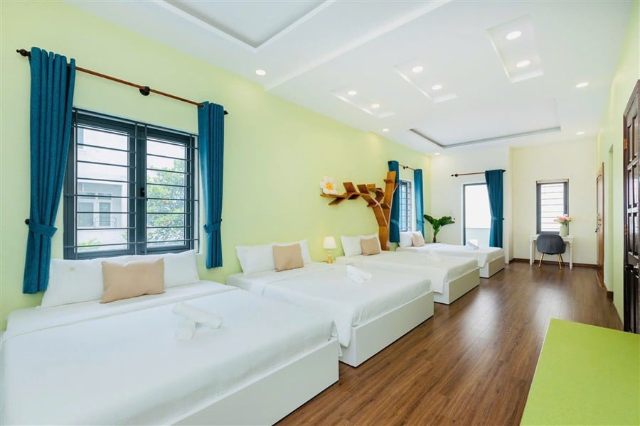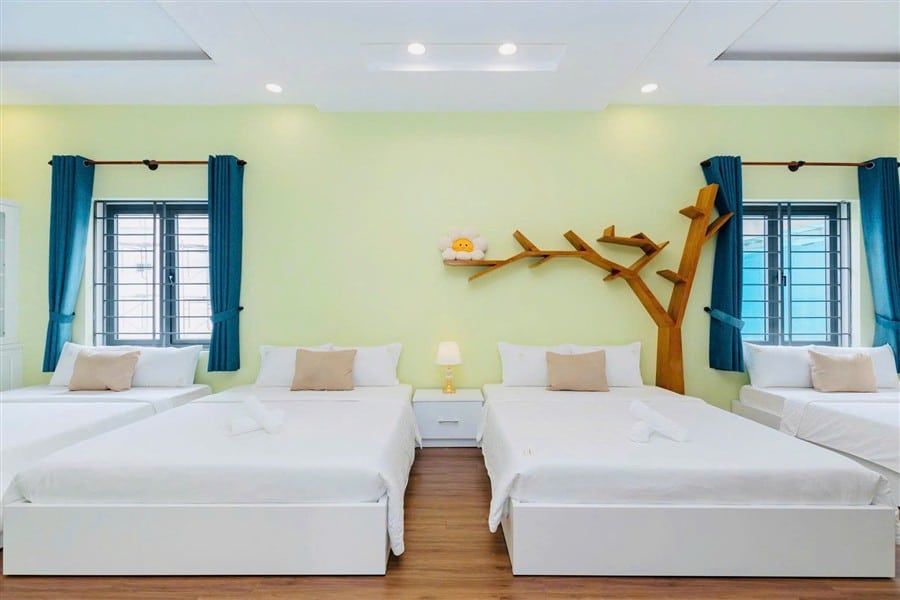 2 Phòng đôi: mỗi phòng 2 giường lớn, có cửa sổ thoáng.