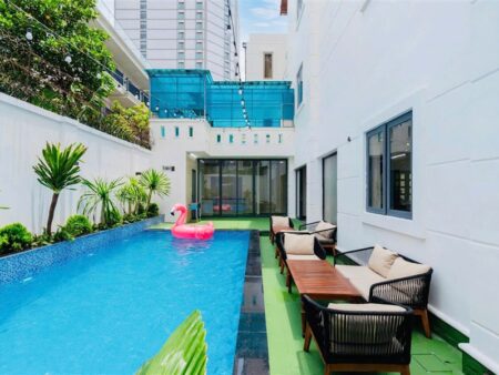 Homestay 12 Nguyễn Tuân – Hilton Homestay Gần Biển Bãi Sau, Hồ Bơi Riêng 40m² – Karaoke – Bida – BBQ Sân Vườn Rộng Rãi