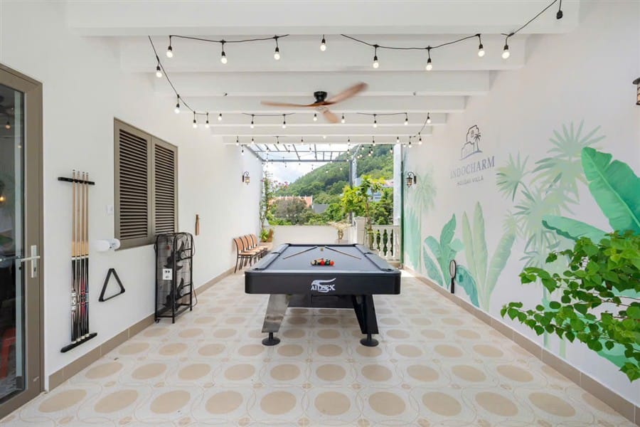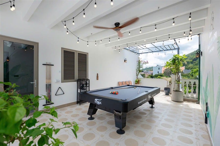 Ghi chú: ✅ Phòng khách máy lạnh, sofa sang trọng, TV 65" + loa soundbar, YouTube Premium, Netflix ✅ Phòng giải trí: bàn bida, phòng karaoke cách âm, ghế massage