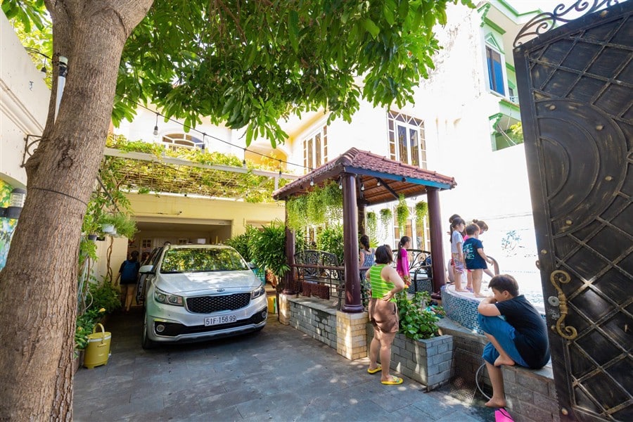 Khu vực sân vườn thoáng mát, phù hợp tiệc sinh nhật hoặc pool party.