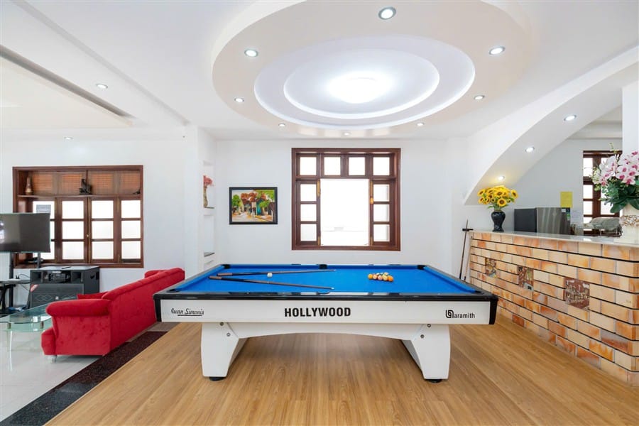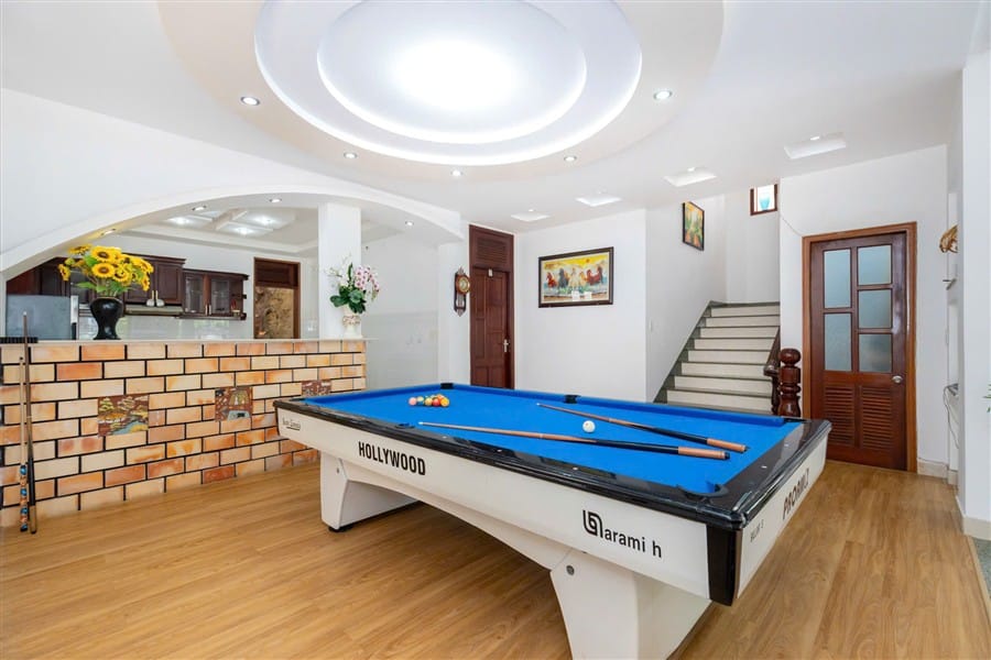 Khu giải trí: phòng karaoke riêng cách âm 24/24, bàn bida, phòng khách rộng rãi, ghế massage, mang đến trải nghiệm vui chơi trọn vẹn.