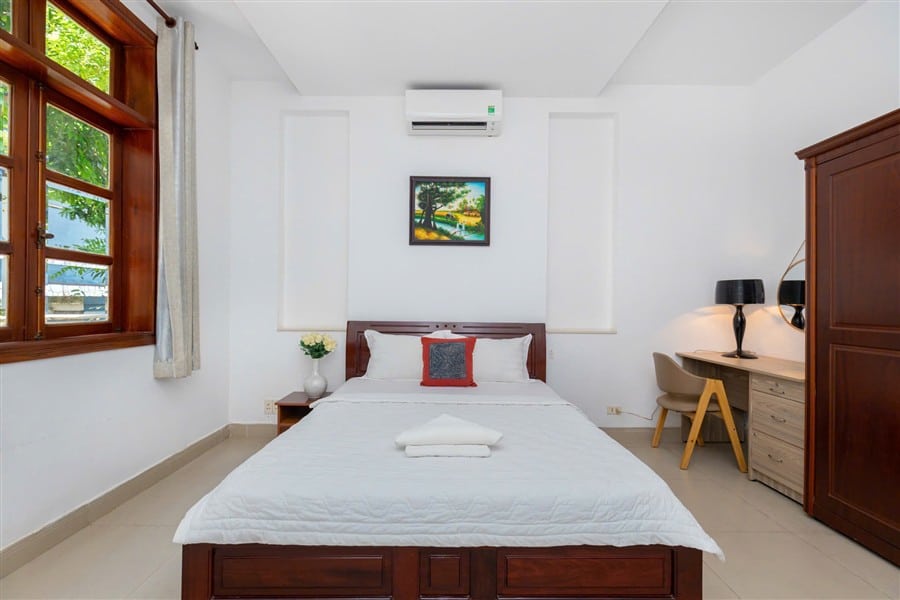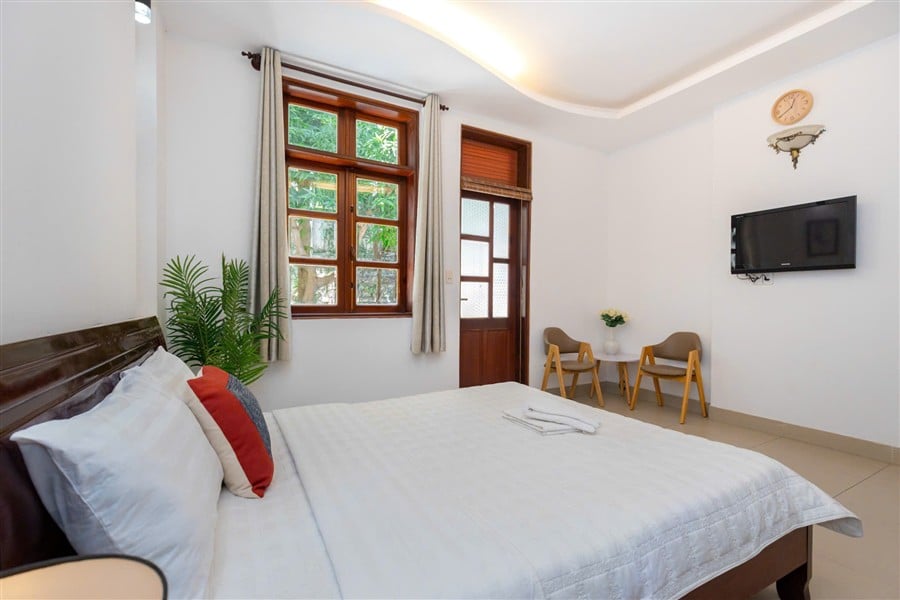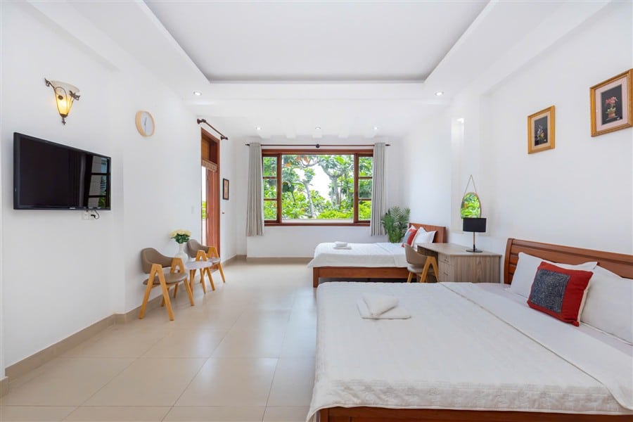 Tất cả phòng đều được trang bị máy lạnh, tủ quần áo, rèm chống muỗi, đảm bảo không gian nghỉ dưỡng riêng tư và thoải mái.
