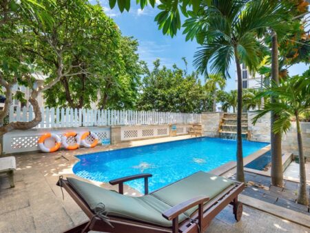 Tiện ích: Hồ bơi 50m², BBQ ngoài trời, bàn bida, karaoke, bếp đầy đủ dụng cụ và gia vị