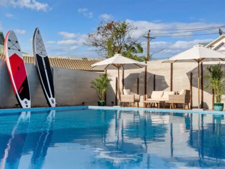 Bạn đang tìm một homestay Vũng Tàu gần biển cho gia đình hoặc nhóm bạn đông người? Homestay Villa 16 Hà Huy Tập – Long Cung chính là gợi ý hoàn hảo. Với vị trí chỉ cách biển Long Cung 50m, căn homestay này mang đến sự thuận tiện tuyệt đối, đồng thời sở hữu hồ bơi lớn, sân BBQ, karaoke miễn phí và nhiều tiện ích giải trí khác.
