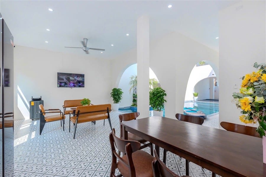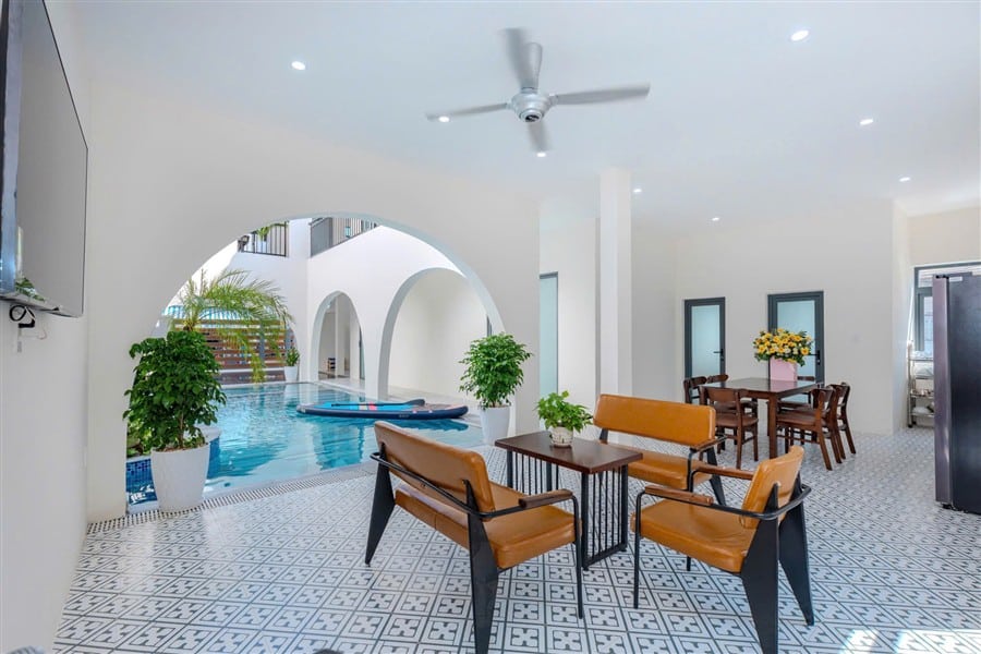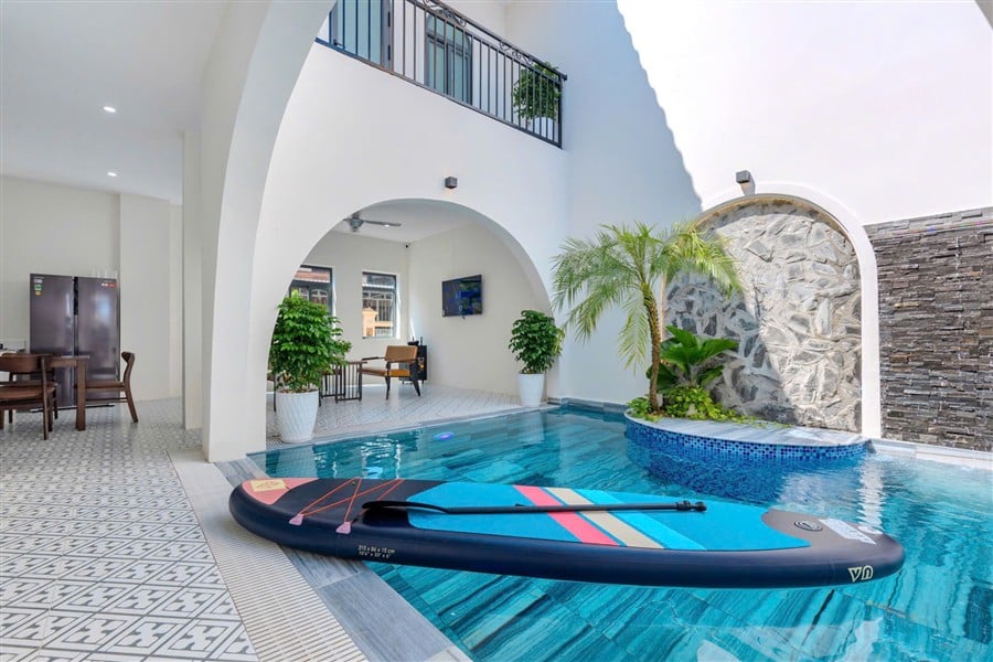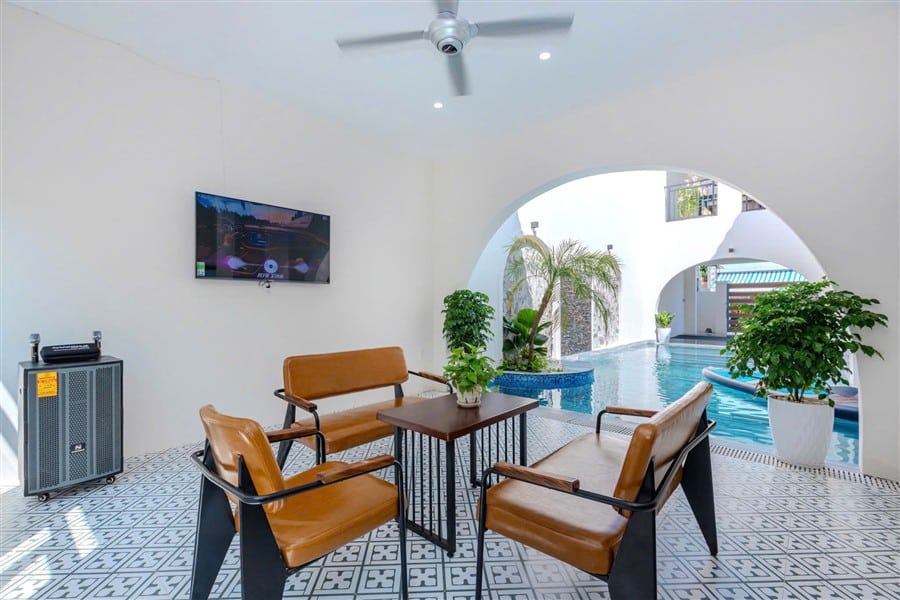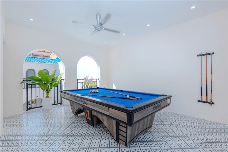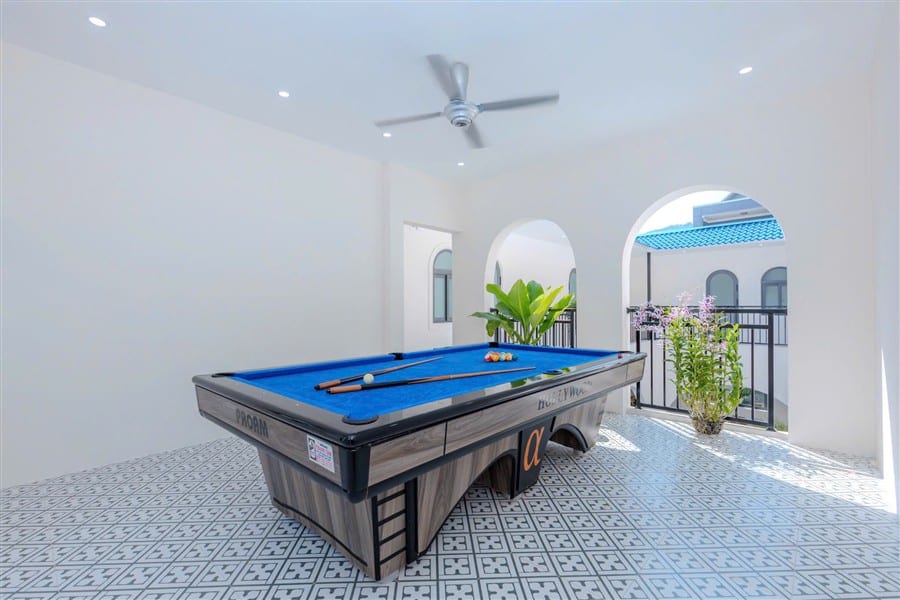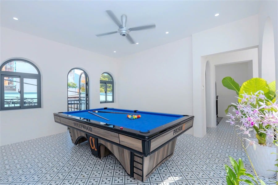 Tiện ích: Hồ bơi ngoài trời 50m², có khu vực riêng cho trẻ em, nước sạch, thoáng mát và ghế thư giãn Phòng karaoke riêng, âm thanh vừa phải, phục vụ giải trí tại chỗ cho cả gia đình hoặc nhóm bạn Bàn bida và máy game bắn cá, tạo không gian giải trí phong phú cho mọi lứa tuổi