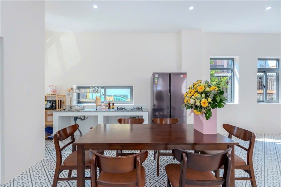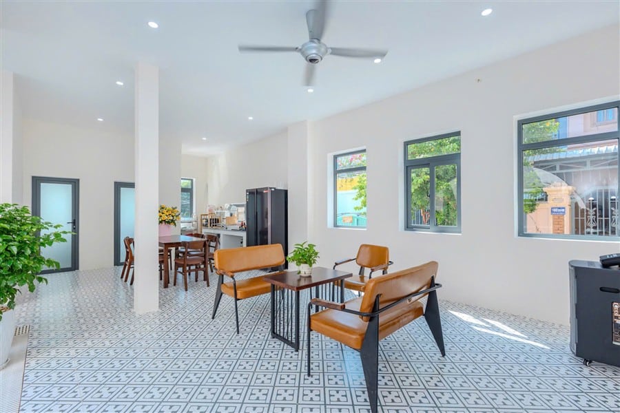 Sức chứa: tiêu chuẩn 15 khách, tối đa 25 khách lớn nhỏ Cách biển: bãi sau 250m