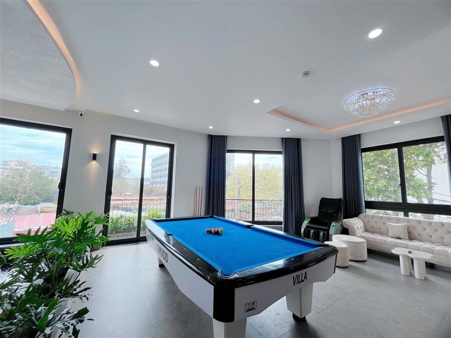 Bàn bida và sân thượng rộng rãi, khu vực BBQ ngoài trời