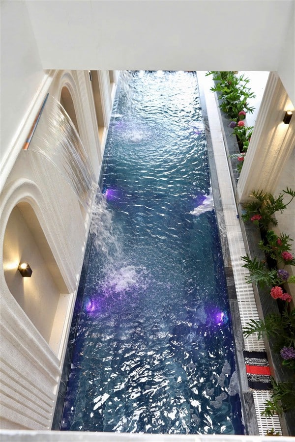 Hồ bơi 50m², có khu vực sục massage Jacuzzi, an toàn cho trẻ em