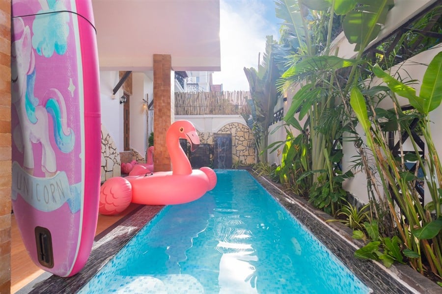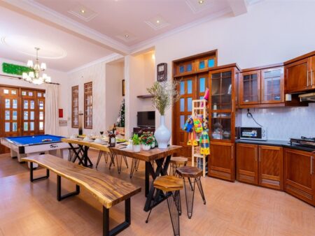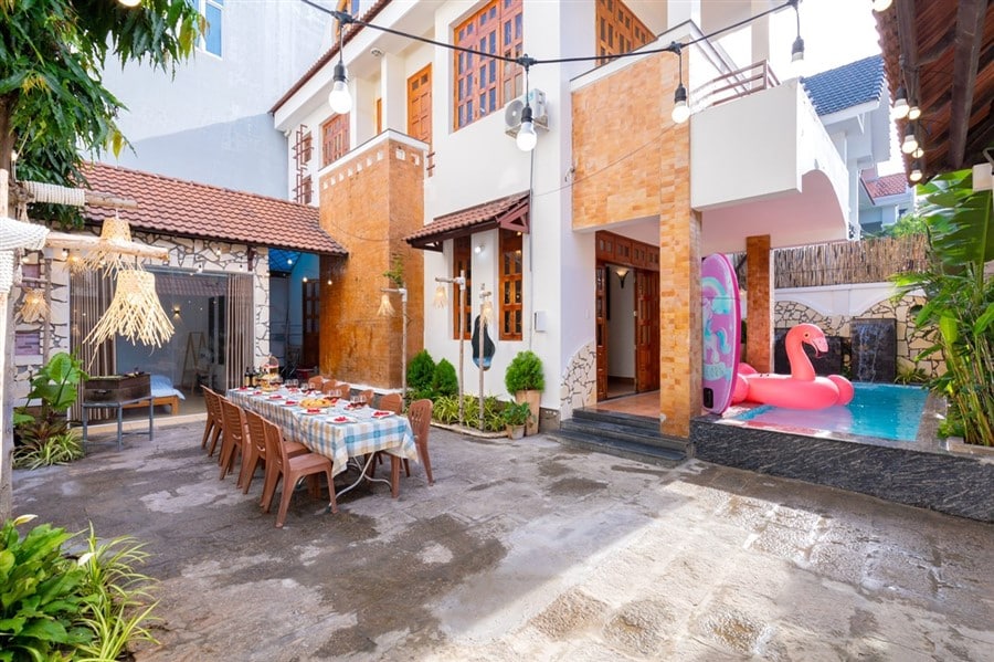 Homestay Noel được thiết kế hiện đại, đầy đủ tiện nghi với 5 phòng ngủ – hồ bơi riêng 35m² – khu BBQ – bàn bida – karaoke – sân đậu xe 16 chỗ, thích hợp cho nhóm bạn, gia đình hoặc đoàn 10–15 khách muốn tận hưởng kỳ nghỉ thoải mái tại thành phố biển.