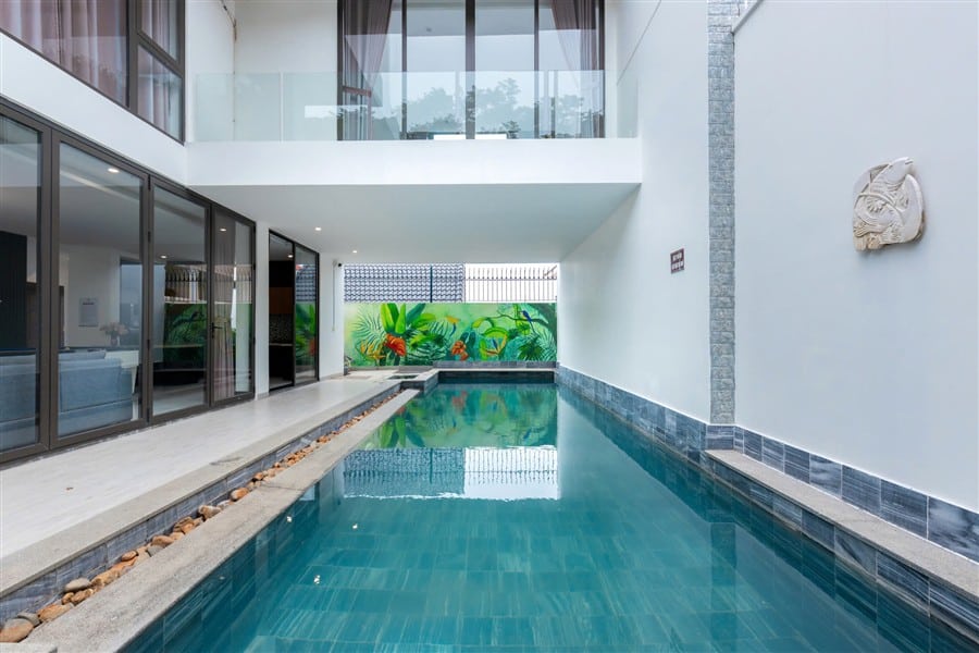 Hồ bơi 50m², sục massage, khu vực riêng cho trẻ em