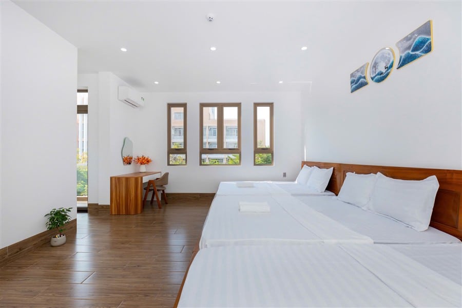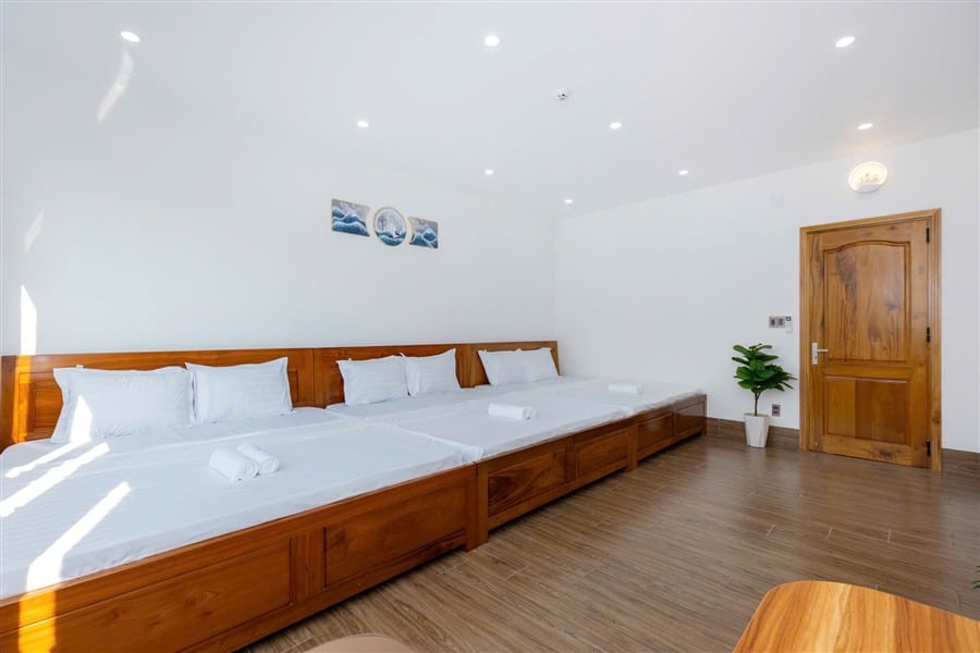 Tầng trệt và các tầng lầu: 4 phòng ngủ, gồm 2 phòng 2 giường view cột cờ Bãi Sau, 2 phòng 3 giường, mỗi phòng đều có WC riêng