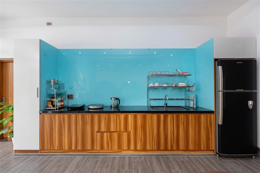 Bếp đầy đủ dụng cụ nấu ăn và gia vị cơ bản