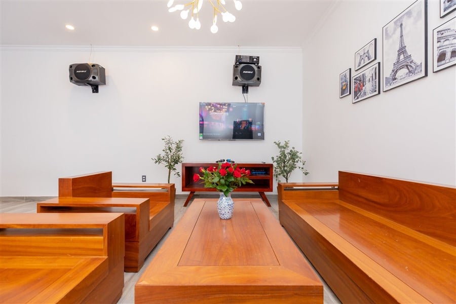 Tiện ích: Phòng Karaoke, Bida, 4 Bàn Inox, 30 ghế ( ngồi nhậu sân vườn ), Có sân đậu xe 29 chỗ trước nhà