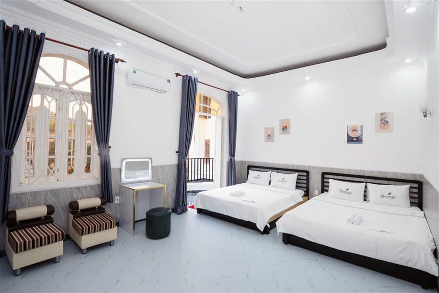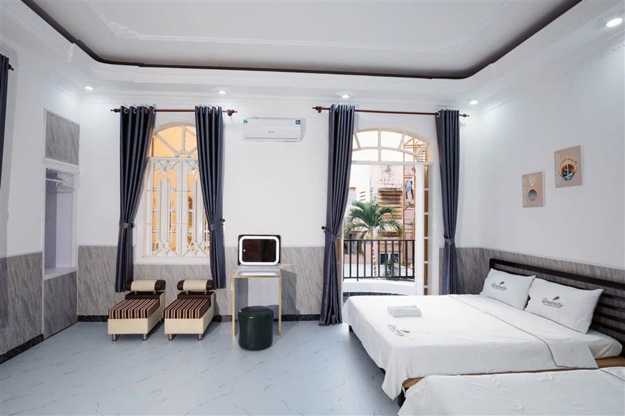 Tất cả phòng đều được trang bị máy lạnh, nội thất hiện đại, tủ quần áo, ban công và rèm chống muỗi, mang đến trải nghiệm nghỉ dưỡng tiện nghi, thoải mái và sang trọng.
