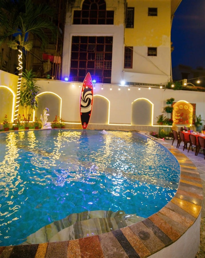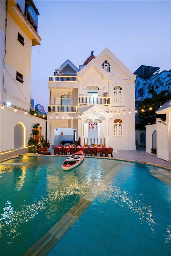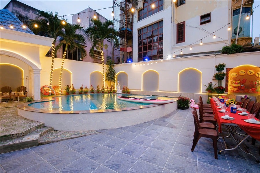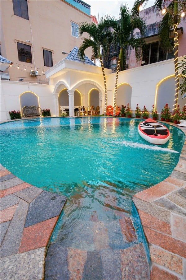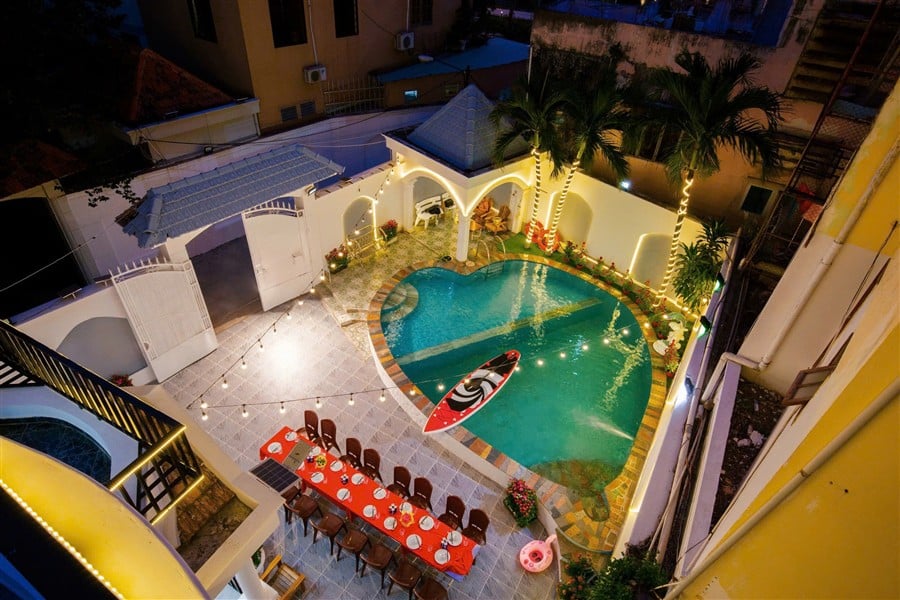 Hồ bơi hình trái tim độc đáo, sân thượng, sân BBQ, phòng karaoke và bàn bida mang đến trải nghiệm giải trí trọn vẹn