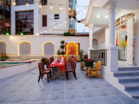 Sân trong rộng rãi, đậu được 16 xe 4–7 chỗ, thuận tiện cho đoàn đông. Không gian ngoài trời, hồ bơi, sân thượng và sân BBQ tạo điều kiện hoàn hảo cho các hoạt động vui chơi, tụ họp nhóm hoặc nghỉ dưỡng dài ngày.