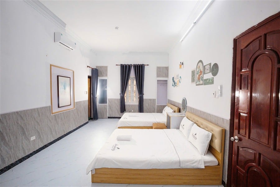 Homestay gồm 7 phòng ngủ, tổng 11 giường lớn và 5 nệm phụ, sức chứa tiêu chuẩn 25–30 khách và tối đa 35 khách với phụ phí.