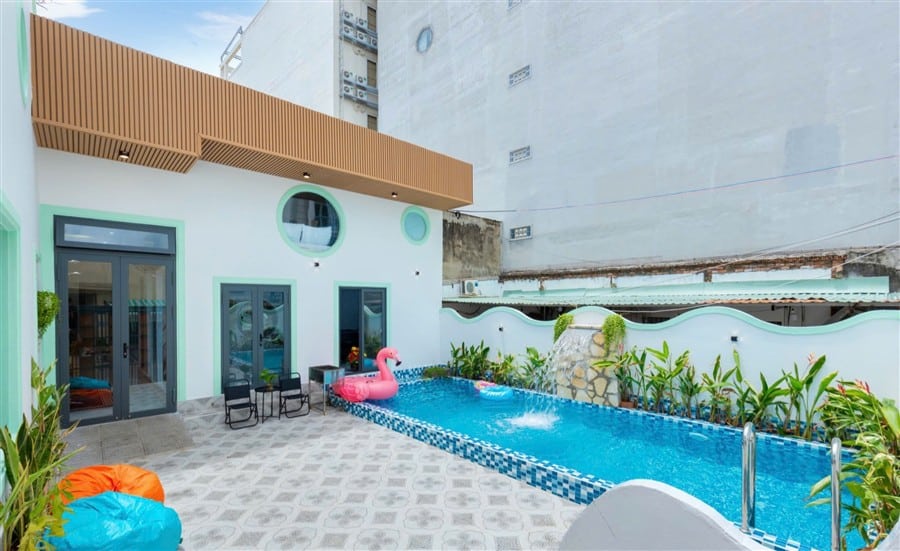 Homestay 58 Phó Đức Chính – Homestay cao cấp sát biển Bãi Sau, hồ bơi mái che duy nhất, đầy đủ tiện nghi giải trí