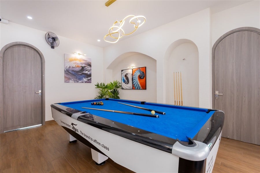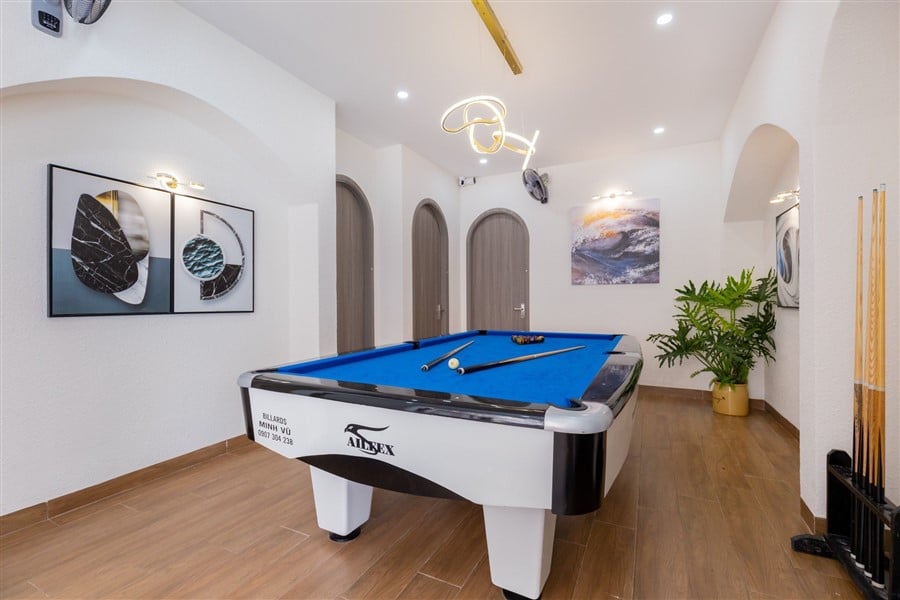 ✅ Phòng giải trí đa năng gồm bàn bida lỗ, bàn bi lắc và bàn hockey.