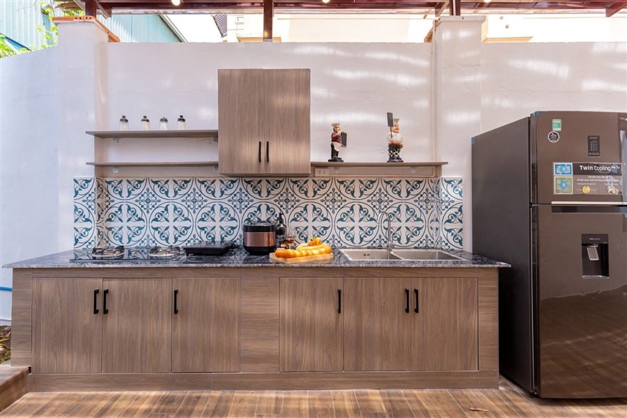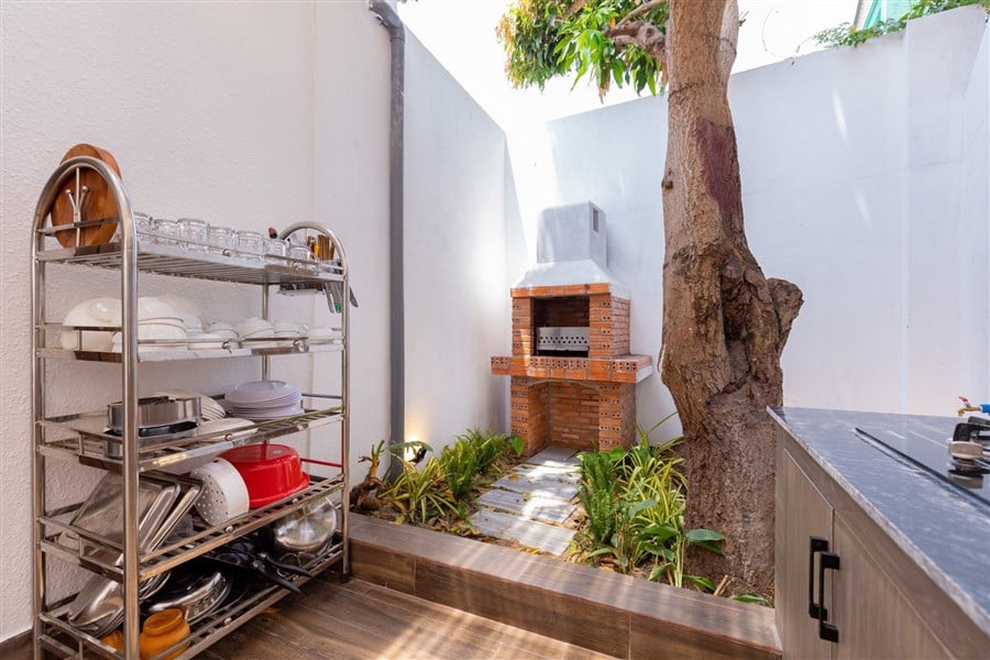 ✅ Khu bếp hiện đại – đầy đủ bếp gas, lò nướng BBQ, chén dĩa, ly tách, nồi niêu, tiện cho nấu nướng hoặc tổ chức tiệc.