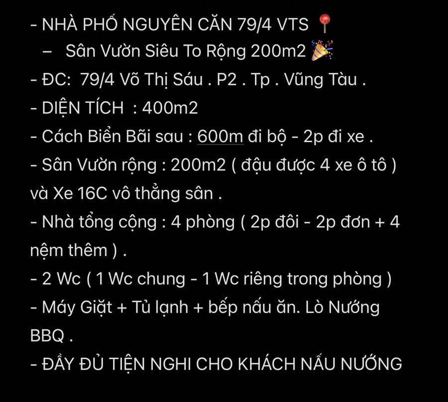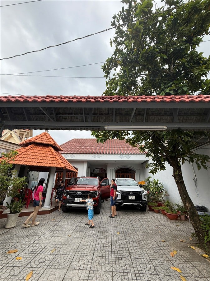Ghi chú: ✅ Sân vườn rộng rãi với khu vực BBQ ngoài trời ✅ Chỗ để 3 ô tô 4–7 chỗ trong sân, xe 16 chỗ đậu trước nhà