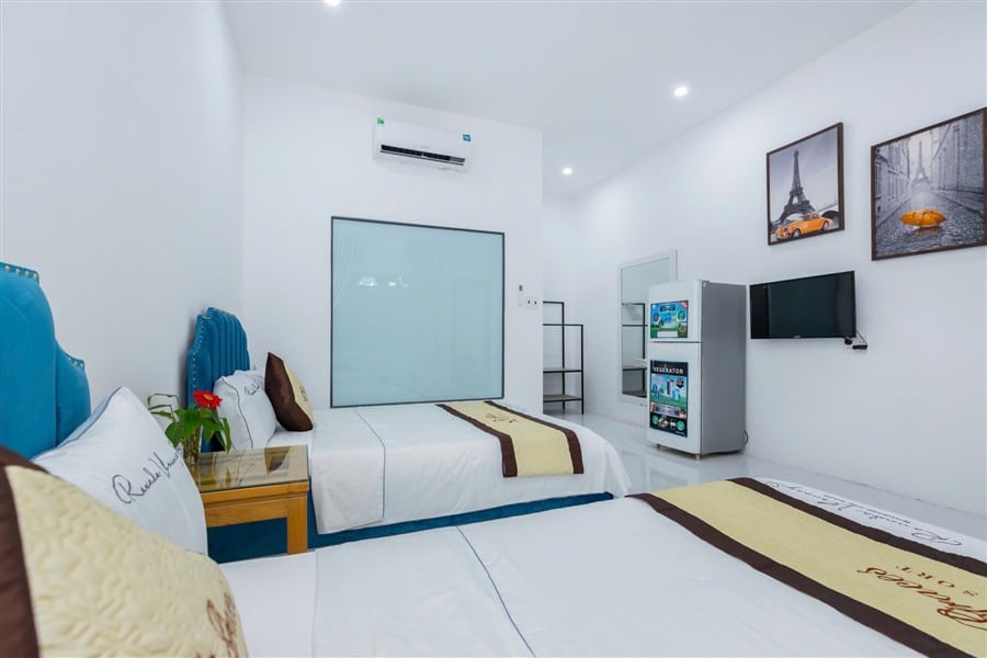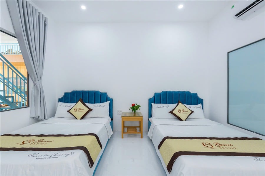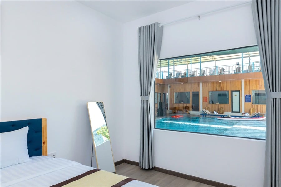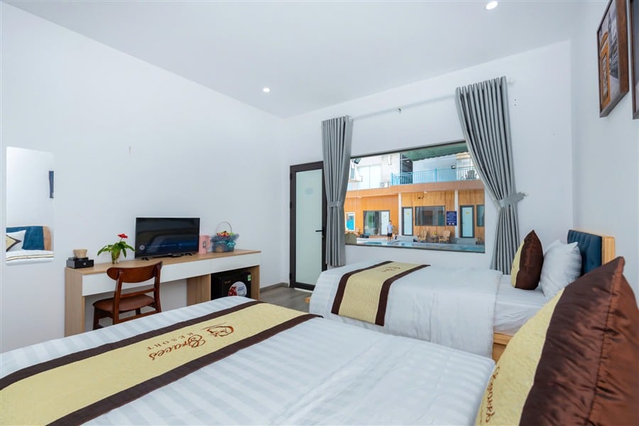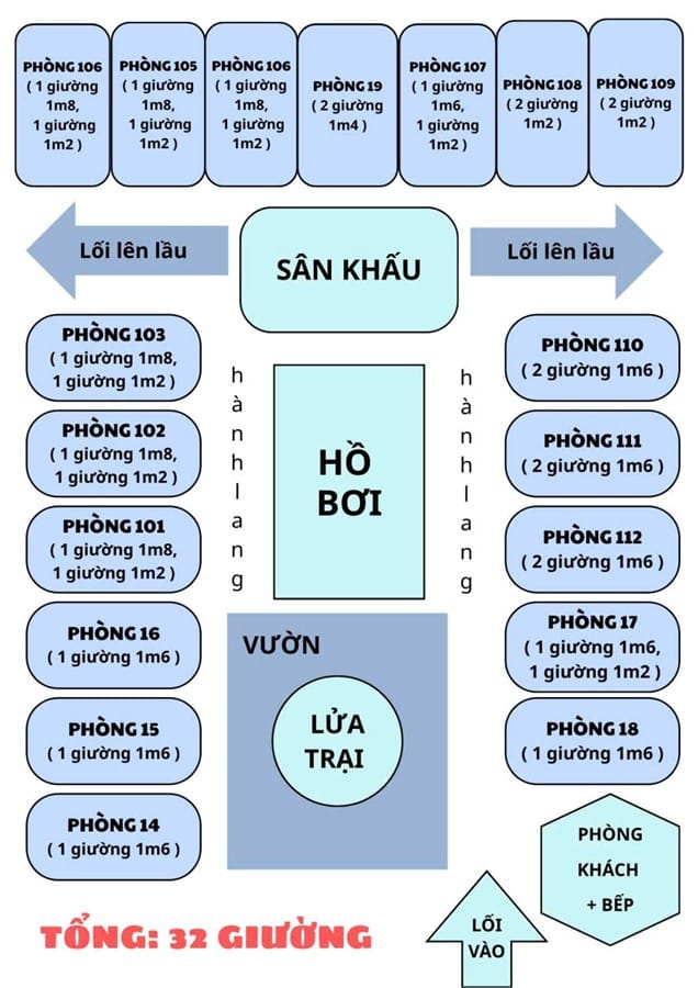 Phòng còn lại: 6 phòng 1 giường 1m8, 2 phòng 1 giường 1m6, 6 phòng 2 giường 1m4 và 1 phòng 2 giường 1m4, tất cả đều có WC riêng tiện nghi.