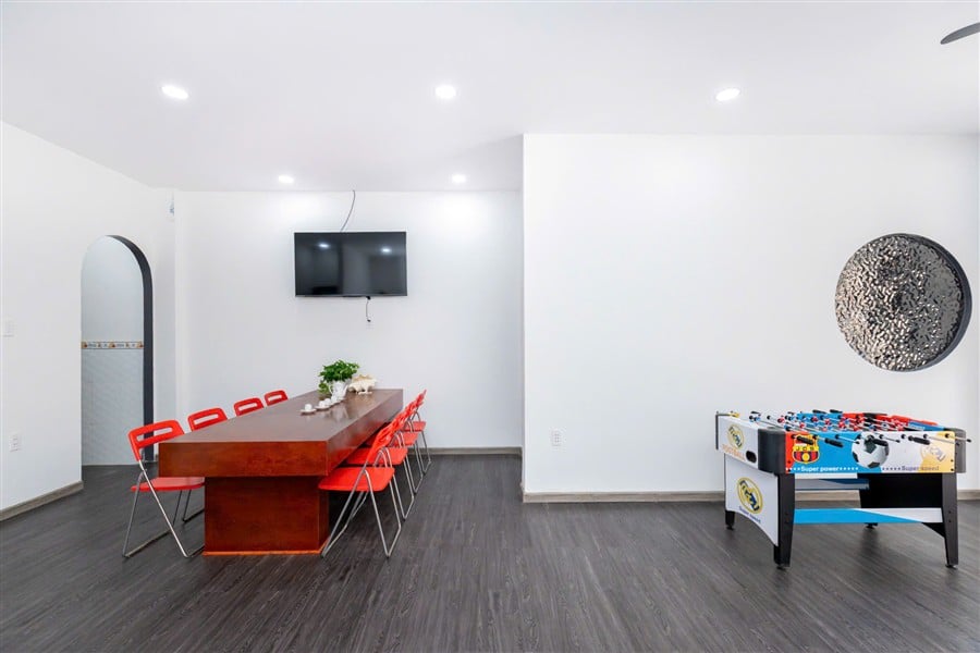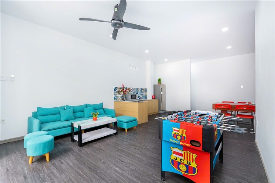Khu vực giải trí với tivi 55 inch và bàn Banh Lắc miễn phí