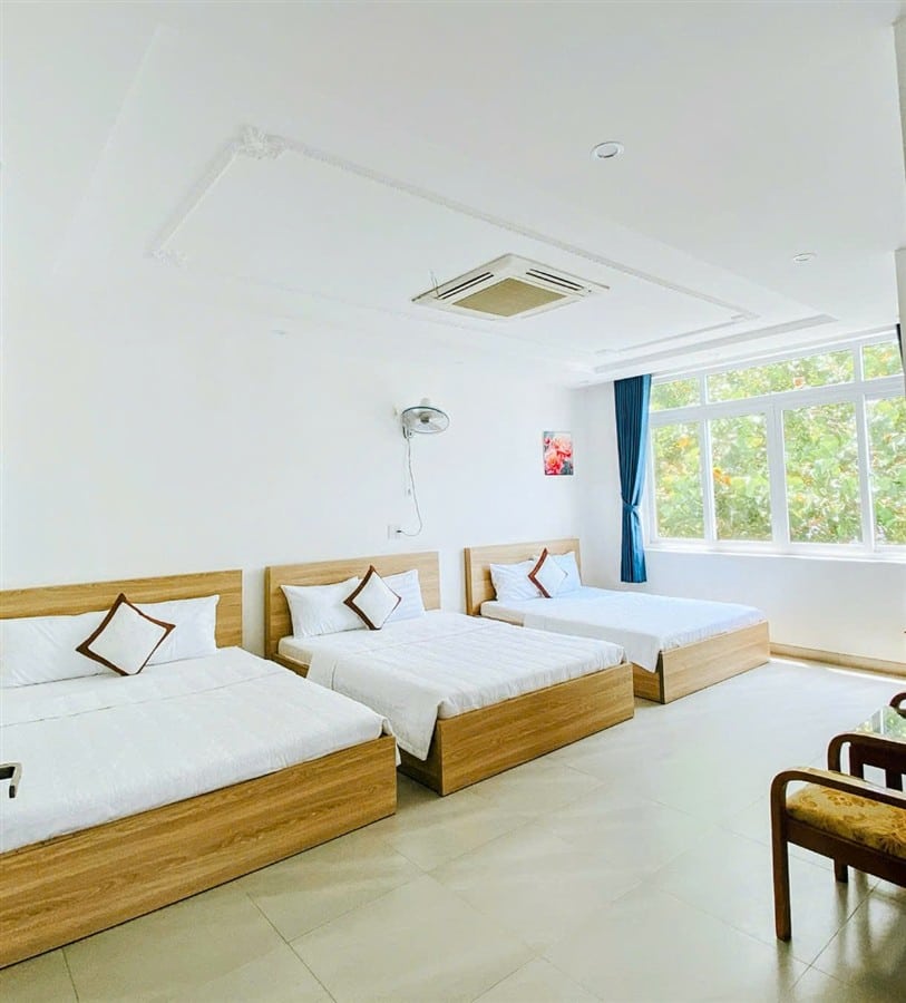 ✅ Nội thất hiện đại: máy lạnh, quạt trần, rèm chống muỗi, chăn ga gối tiêu chuẩn khách sạn