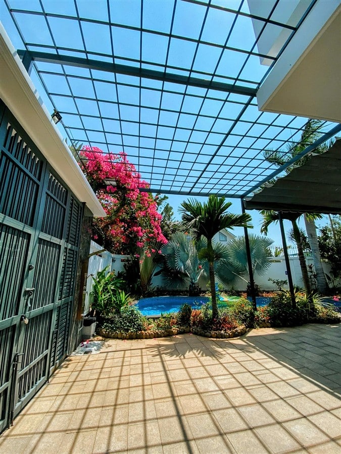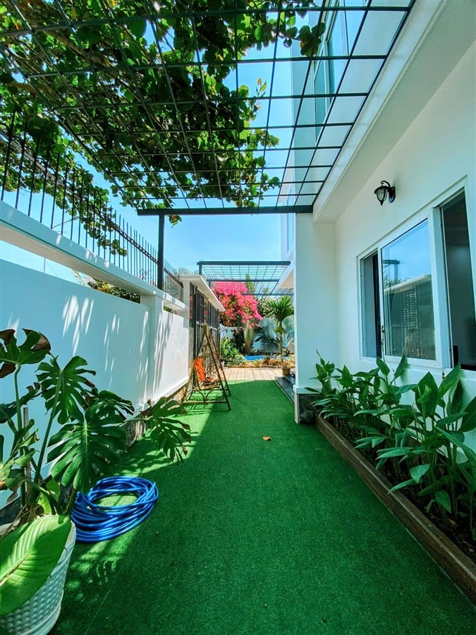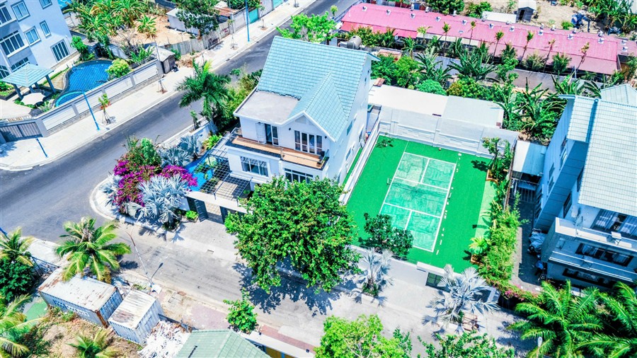 Sân trong và sân trước rộng rãi đủ chỗ đậu 2–3 ô tô 7 chỗ, xe 16–30 chỗ ra vào và quay đầu thuận tiện. Không gian ngoài trời, hồ bơi, sân thượng và sân pickleball tạo điều kiện hoàn hảo cho các hoạt động vui chơi, tụ họp nhóm hoặc nghỉ dưỡng dài ngày.