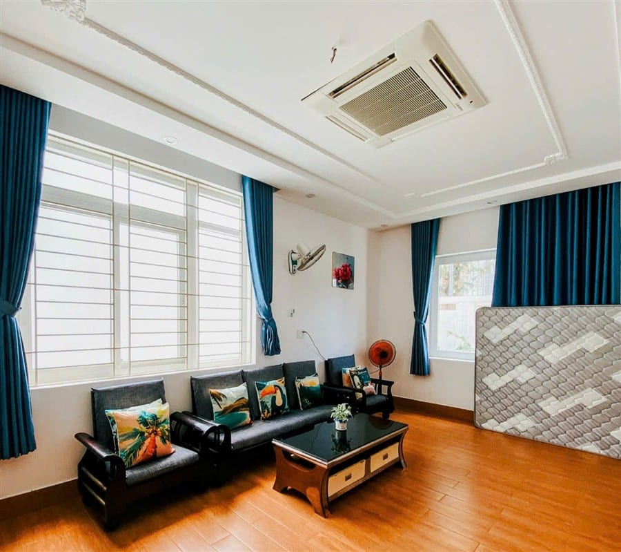 Homestay sở hữu 7 phòng ngủ với tổng 10 giường đôi và nhiều sofa bed, sức chứa tiêu chuẩn 25–30 khách và tối đa 35 khách khi sử dụng thêm nệm.