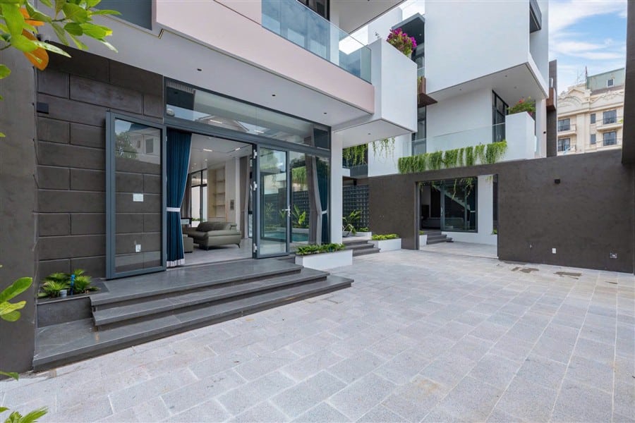 Sân trước rộng rãi, đủ chỗ đậu 2–3 ô tô 4–7 chỗ, đường nội bộ cho xe 16–30 chỗ vào tận nơi, đảm bảo an toàn và thuận tiện cho nhóm đông người. Không gian ngoài trời thoáng mát, sân vườn rộng rãi, sân BBQ và hồ bơi tạo điều kiện hoàn hảo cho các hoạt động vui chơi, tổ chức tiệc hoặc nghỉ dưỡng dài ngày.