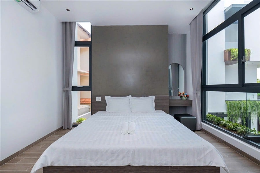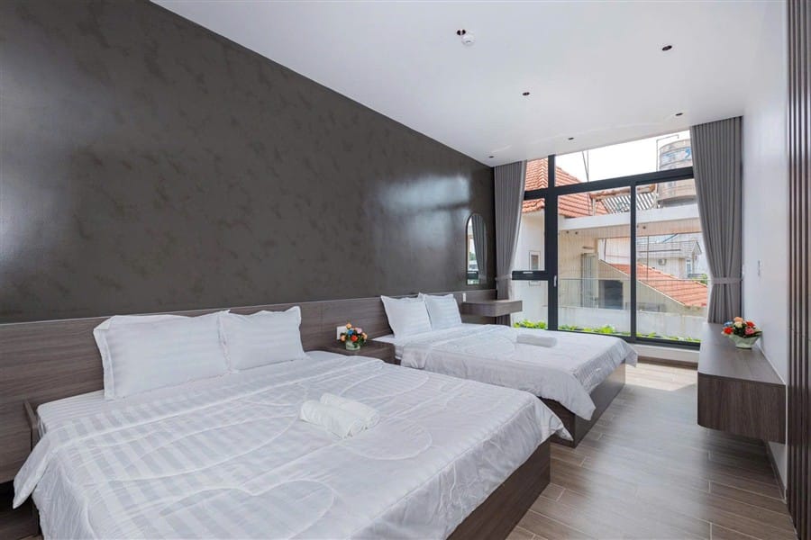 ✅ Nội thất hiện đại: máy lạnh, bàn ủi, máy sấy tóc, chăn ga gối tiêu chuẩn khách sạn