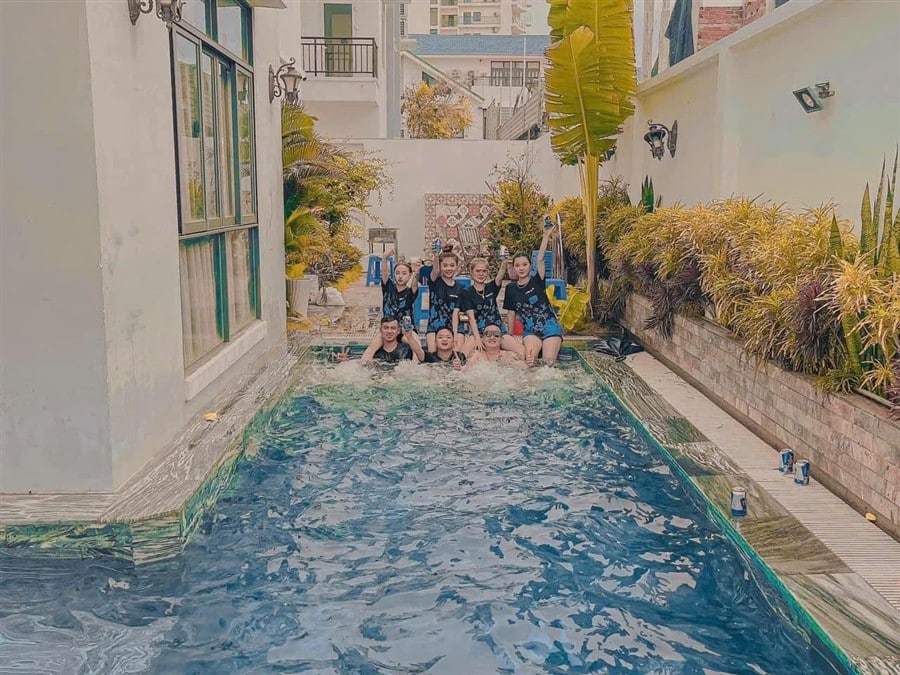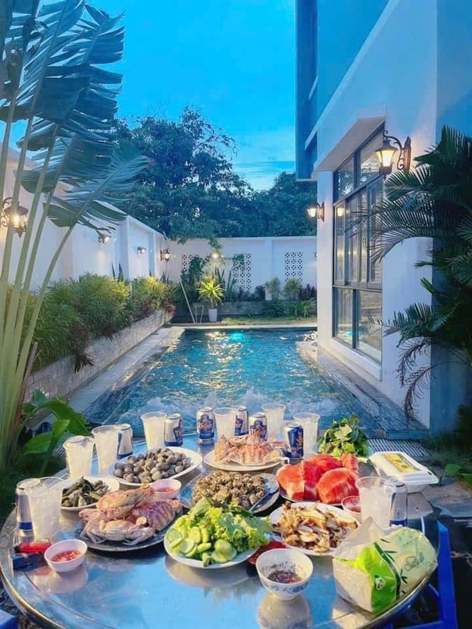 Tiện ích: ✅ Hồ bơi riêng 40m2, rộng rãi và thoáng mát, lý tưởng thư giãn và bơi lội ✅ Sân thượng BBQ cạnh hồ bơi, đầy đủ bàn ghế và lò than cho 30 khách ✅ Phòng VIP với bồn tắm và ghế tình yêu
