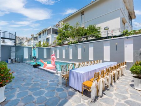Điểm nhấn của Homestay B2.42 Thùy Dương 3 là hồ bơi riêng 75m², cùng sân nhà thoáng mát, tạo không gian thư giãn, bơi lội và tổ chức các hoạt động ngoài trời cho cả gia đình hoặc nhóm bạn. Khu vực BBQ ngoài trời được trang bị đầy đủ bàn ghế và lò than, thuận tiện tổ chức tiệc nướng. Homestay còn có phòng karaoke với loa 2 mic miễn phí và bàn bida, mang đến trải nghiệm giải trí trọn vẹn cho mọi thành viên.