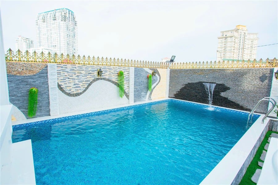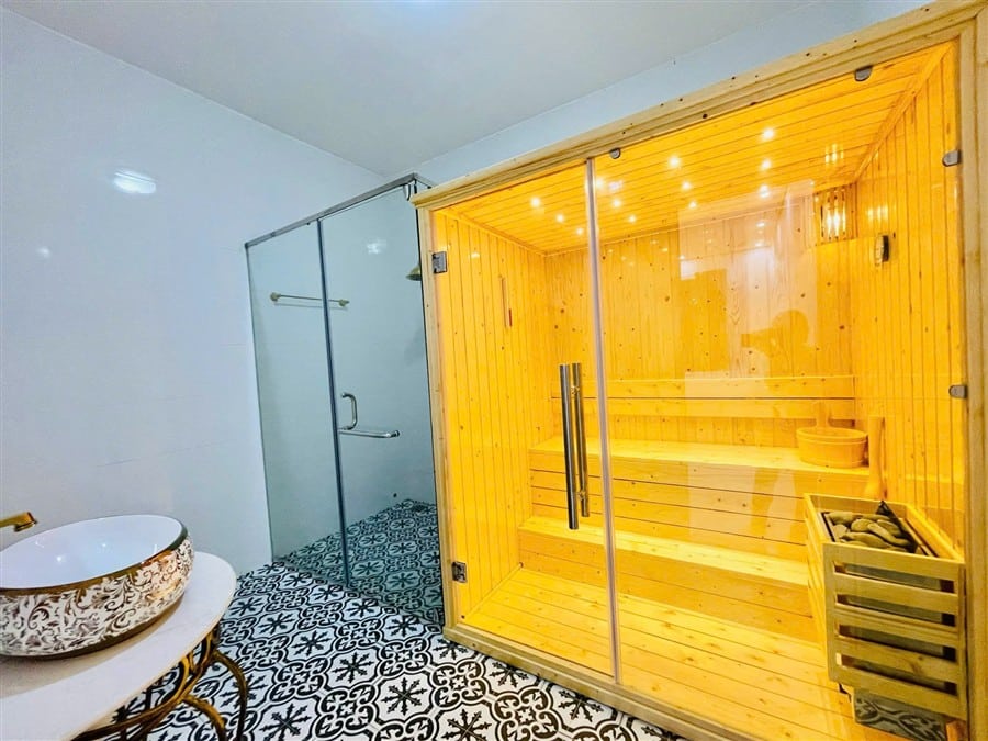 Hồ bơi ngoài trời, sân BBQ, phòng karaoke, phòng chiếu phim, phòng xông hơi và bàn bida mang đến trải nghiệm giải trí trọn vẹn
