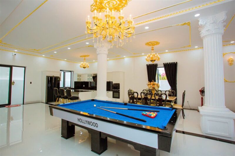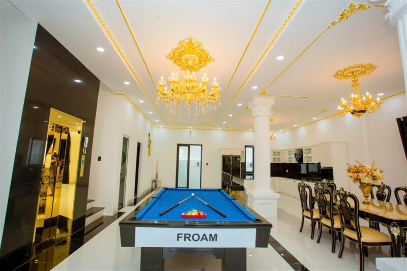 Sân giải trí: BBQ ngoài trời, bàn bida, karaoke, phòng chiếu phim, phòng xông hơi, ghế massage