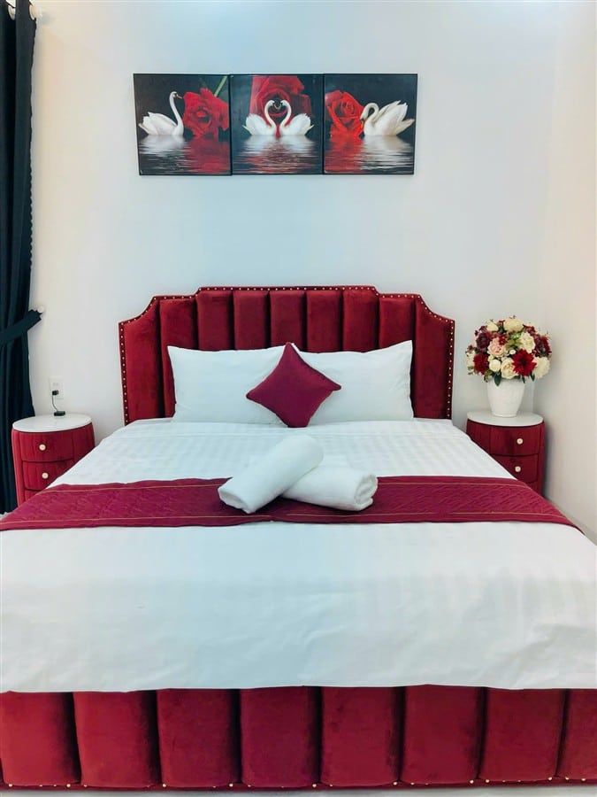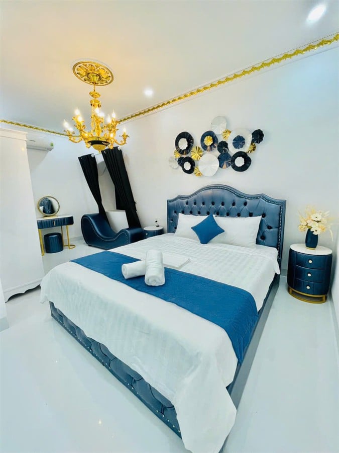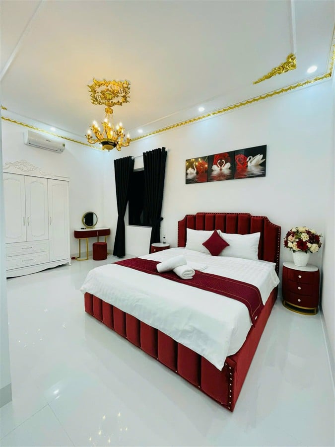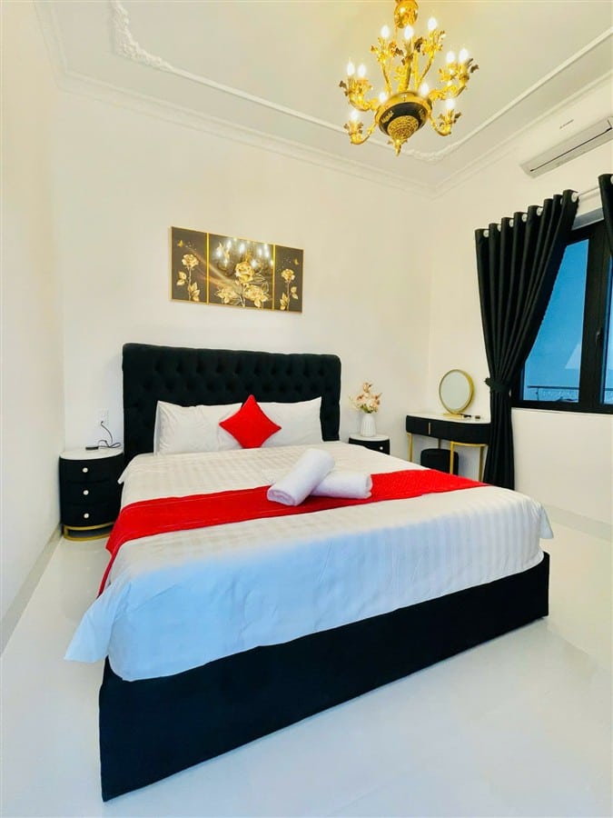 Tất cả phòng đều được trang bị máy lạnh, nội thất sang trọng, tủ quần áo, rèm chống muỗi, mang đến không gian nghỉ dưỡng thoải mái và riêng tư.