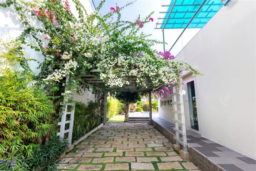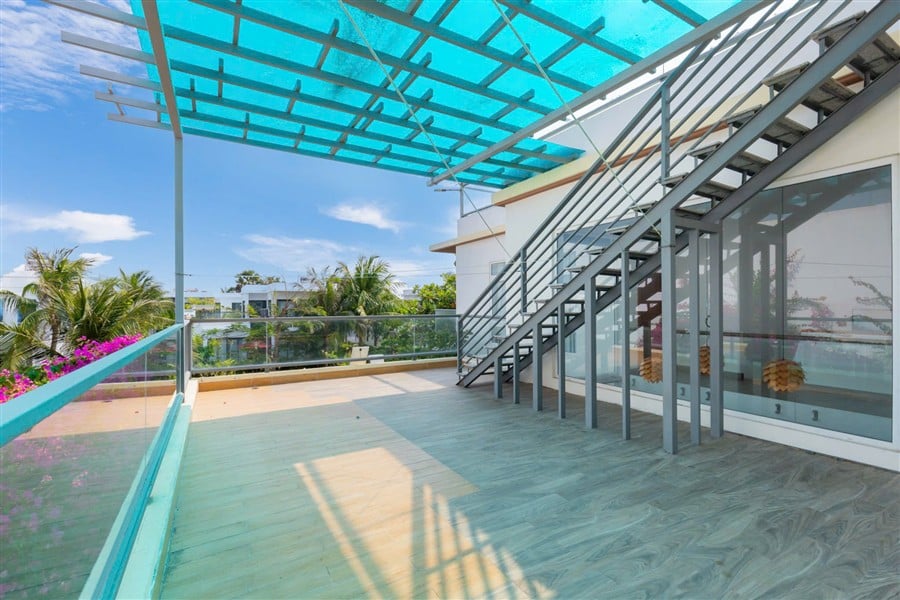 Diện tích: 550m² (bao gồm sân vườn và hồ bơi)
